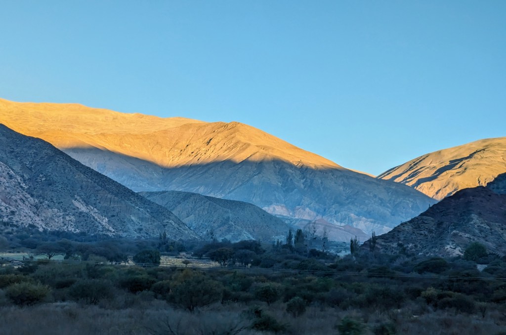 Da es an der Grenze (Wegkreuzung) bei Purmamarca aktuell zu Streiks kommt, hatten wir einen straffen Zeitplan. Die Blockaden werden nur alle drei Stunden geöffnet, deshalb mussten wir das Fenster um 9 Uhr erwischen.