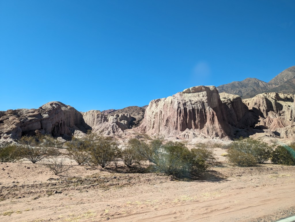 Nach einer Nacht und einem entspannten Tag ging es dann schon wieder weiter Richtung Salta. Salta ist eine interessante Stadt, auch, wenn wir nur ein paar Mal durchgebummelt sind. Eigentlich wollten wir noch den Stadtberg ?? besteigen oder mit der Seilbahn hochfahren. Zeitlich haben wir das aber nicht mehr untergekriegt. Dafür haben wir 2 geführte Touren unternommen. Beide fingen immer sehr früh morgens an und gingen um die 12 Stunden. Die erste Tour war zu dem Salzsee „Salinas Grandes“. Der größte Salzsee des Landes und eines der 7 Naturwunder Argentiniens. Die Fahrt hierhin war sehr lange, aber die Landschaft war beeindruckend schön. Inmitten dieser Salzwüste zu stehen war auf jeden Fall jeden holprigen Kilometer wert. Im Anschluss durften wir noch den Berg der 7 Farben in Purmamarca bewundern. Die zweite Tour führt uns mit vielen Zwischenstopps nach Cafayate. Wieder mit beeindruckenden Aussichten und einer ähnlichen, aber doch ganz anderen Landschaft wie bei der vorherigen Tour. Unter anderem haben wir Halt gemacht am Devil’s Throat und am Amphitheater.