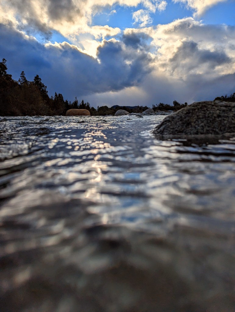Danach ging es einen weiten Weg zum Supermarkt und anschließend einen kleinen schönen Weg den Fluss entlang und wieder zum See. Auf einem Steg haben wir einen kurzen Halt gemacht. Es schneeregnete und war arschkalt.