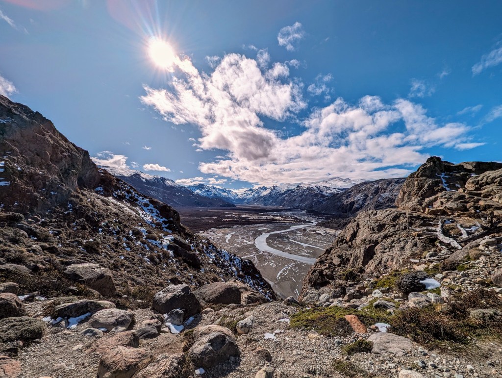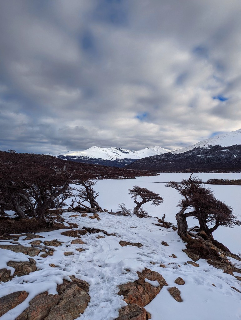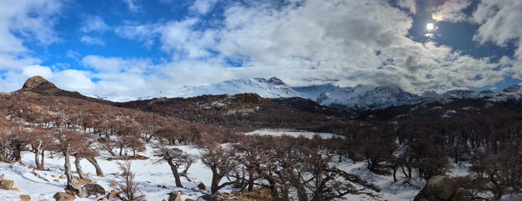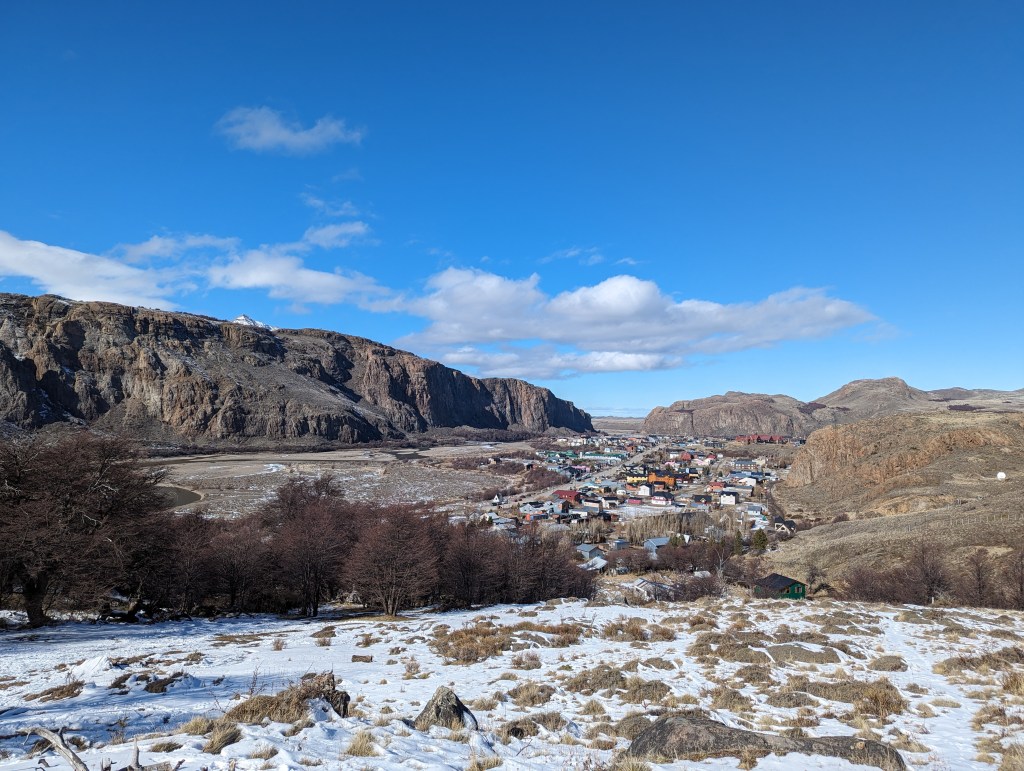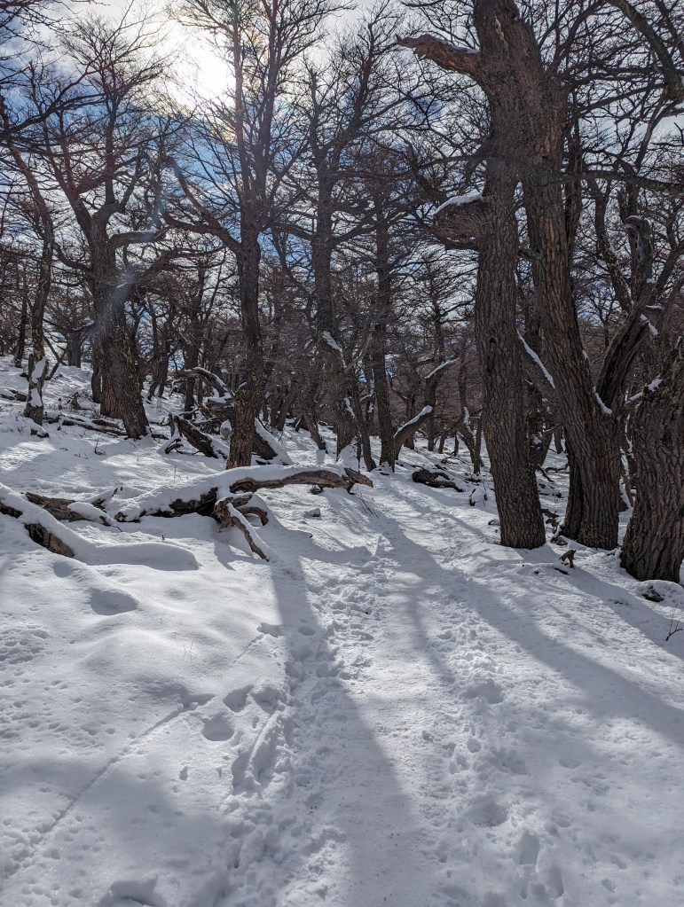 Morgen soll es schneien, aber wir möchten den Weg die Tage noch mal machen und auch weiterlaufen. Ob wir tatsächlich die vollen 20 km hin und zurück mit schwerem Aufstieg zum Schluss zu der „Laguna de los tres“ machen, wissen wir noch nicht. Da diese sicherlich auch „nur“ ein Schneebecken ist. Aber wir möchten uns Gummi-Steigeisen ausleihen, um nicht noch mal so rumzuschlittern.