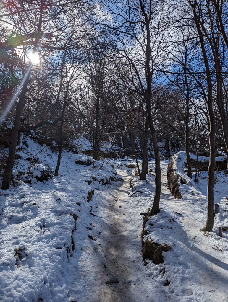 Der Weg führte durch ein wunderschönes Winterwunderland, dementsprechend war auch alles verschneit und der Pfad war fast durchgehend vereist. Eine wilde Rutschpartie.