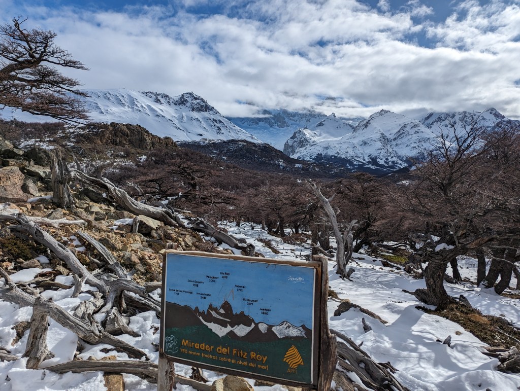 Angekommen am Aussichtspunkt, von welchem man den Fitz Roy sehen kann…sahen wir nichts. Leider hatten wir Pech und der Berg lag in den Wolken, das war echt schade. Wie schon von irgendjemanden in einem Google Review geschrieben wurde, der bei schlechtem Wetter da war: „ich kann mir vorstellen, dass es ein schöner Ausblick sein muss“ 😅.