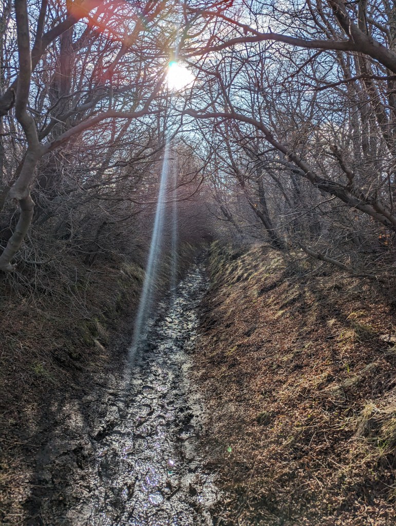 Man hat eine sehr schöne Sicht im Tal auf die Umgebung. Teilweise ist der Weg eine regelrechte Schlammpiste. An einem Teil mussten wir auf die Straße wechseln, da der Weg nur noch Fluss war. Und auch die Straße war teilweise ein Fluss.