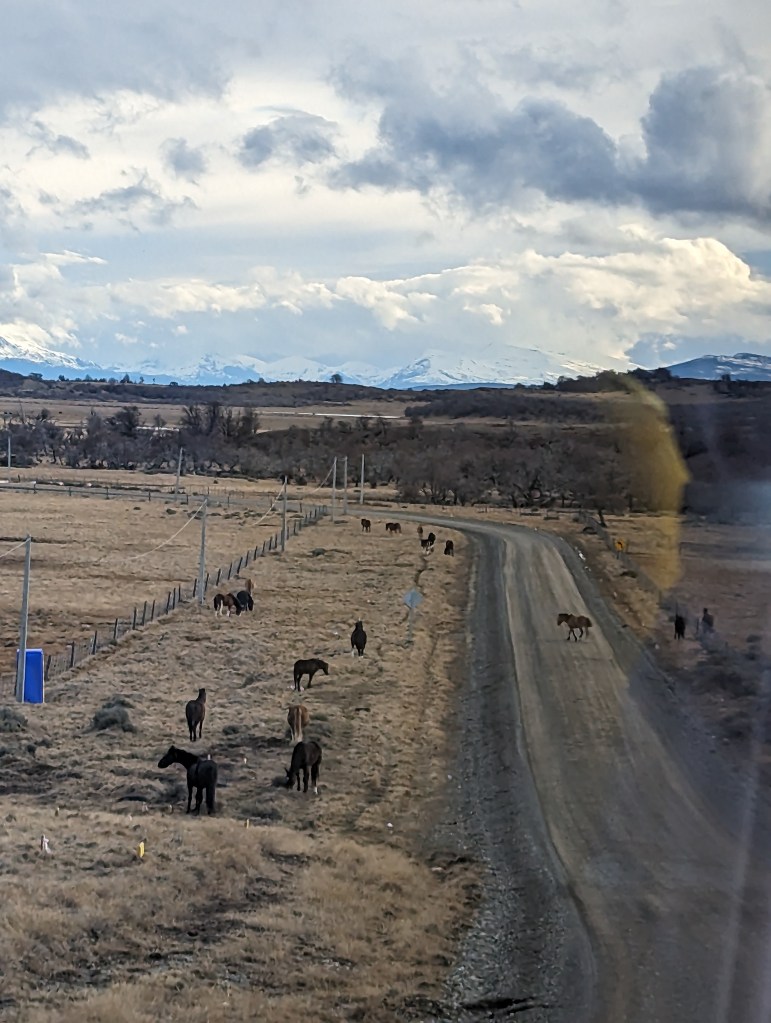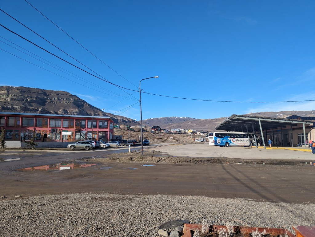 Ca. um 11:45 Uhr fuhr der Bus los. Die Fahrt war recht entspannt. Zuerst hielten wir für die Ausreise am argentinischen Grenzposten und dann für die Einreise am Chilenischen.