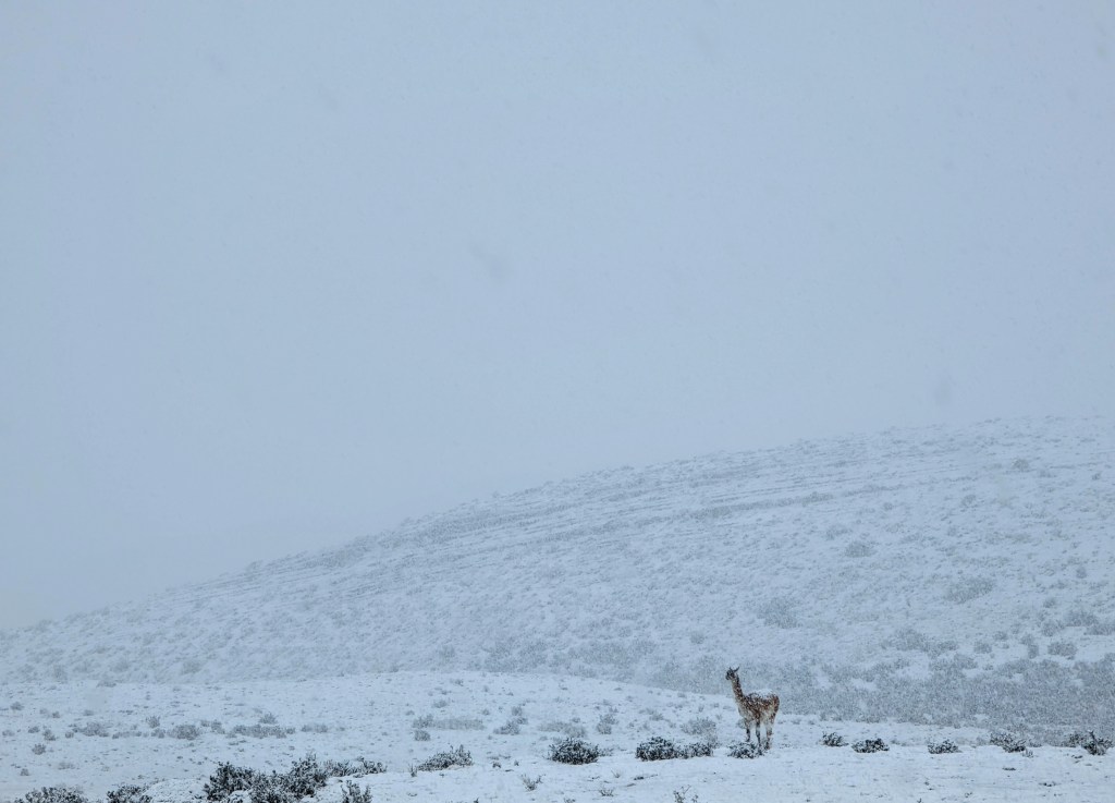 Dafür bekommen wir je weiter die Reise geht ein richtiges Winter-Wonderland. Alles ist richtig toll eingeschneit, sogar die Guanakos und es wird immer mehr.