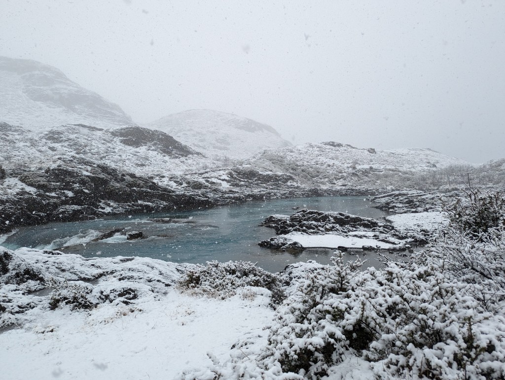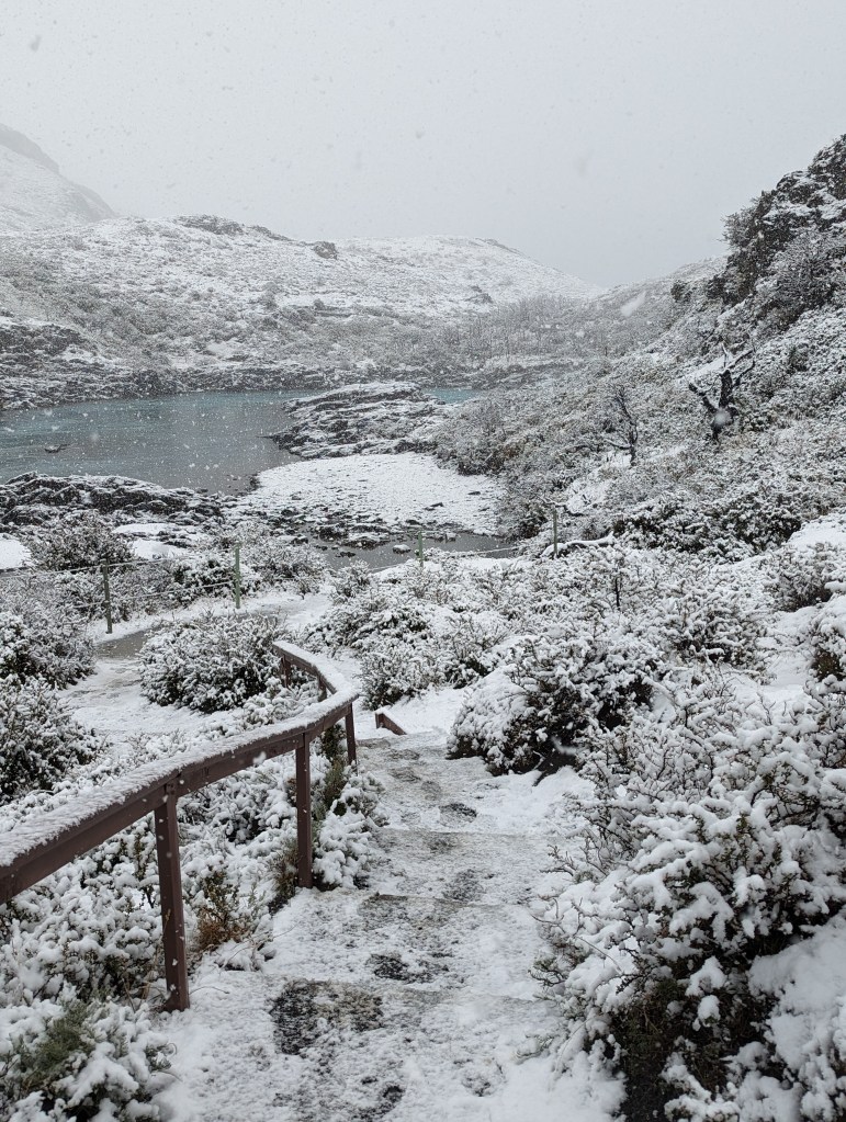 Wetter: Puerto Natales: 5°C 🌧️, im Park: 0°C 🌨️🌨️🌨️🌨️