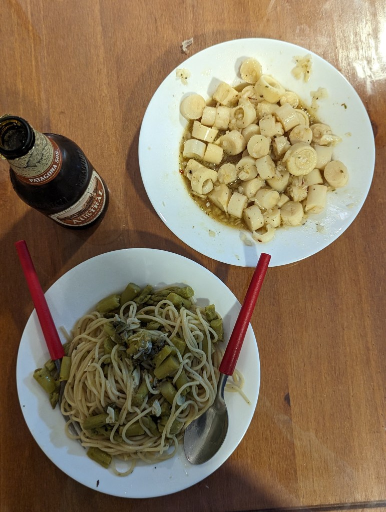 Nach ca. 260 Kilometer und 8 Stunden. Ausflug, sind wir zurück. Wir kaufen noch ein, es gibt Zitronenspaghetti mit Kapern und grünem Spargel, dazu Palmherzensalat. Lecker!
