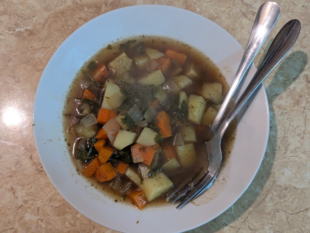 Danach ging es noch einkaufen. Zu Essen gab’s Kartoffel-Karotten-Eintopf.