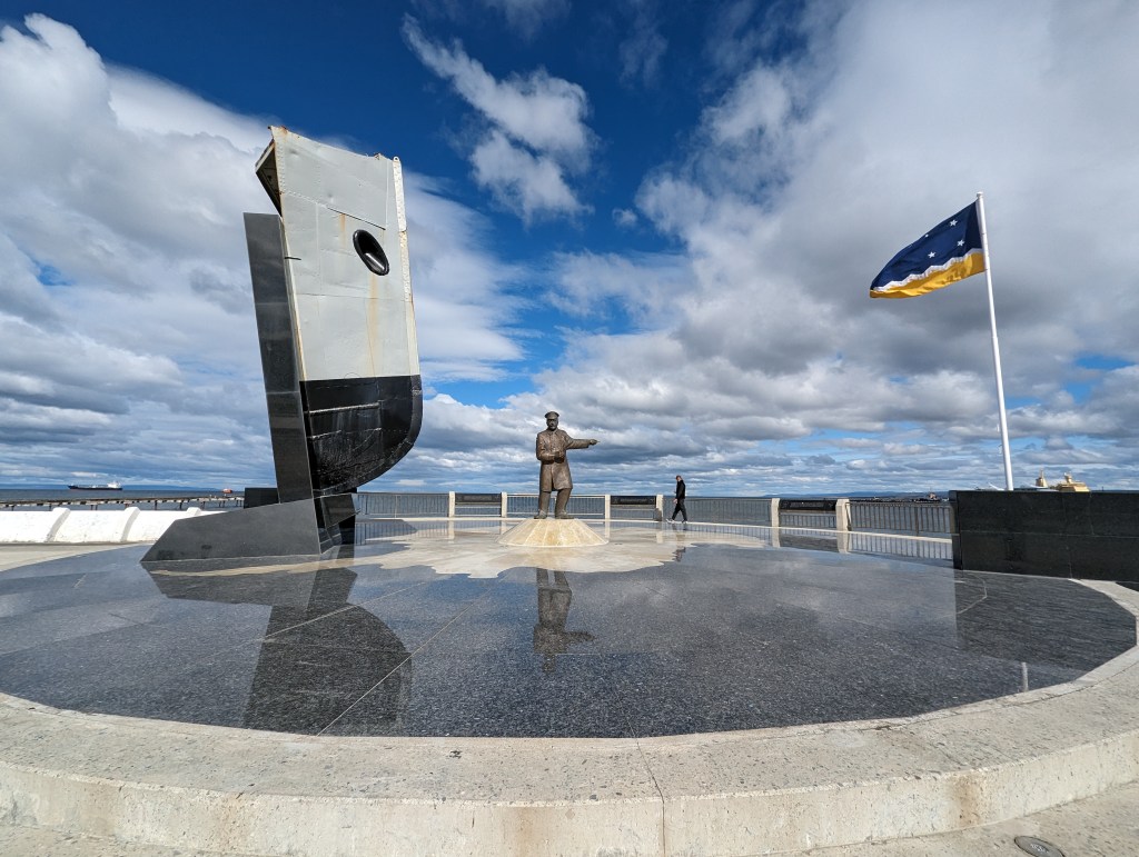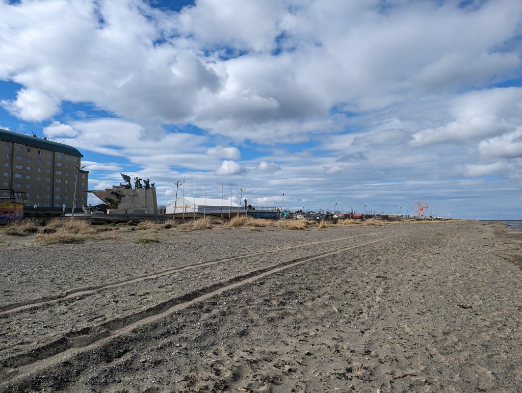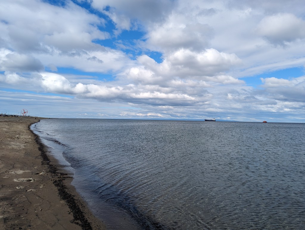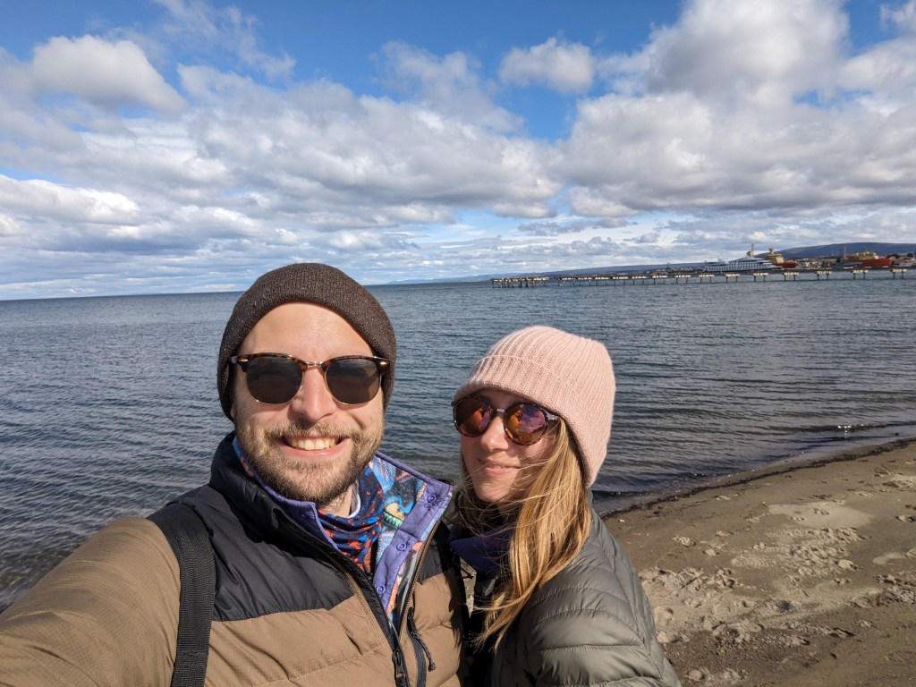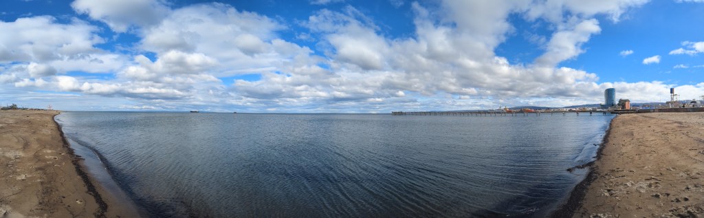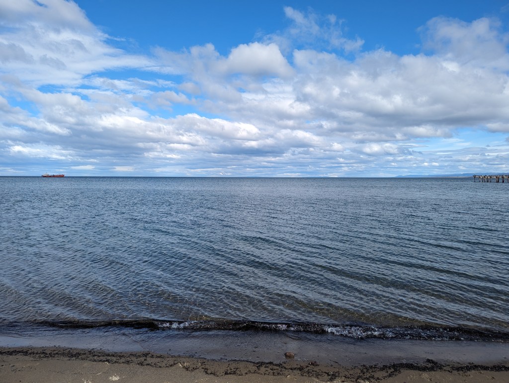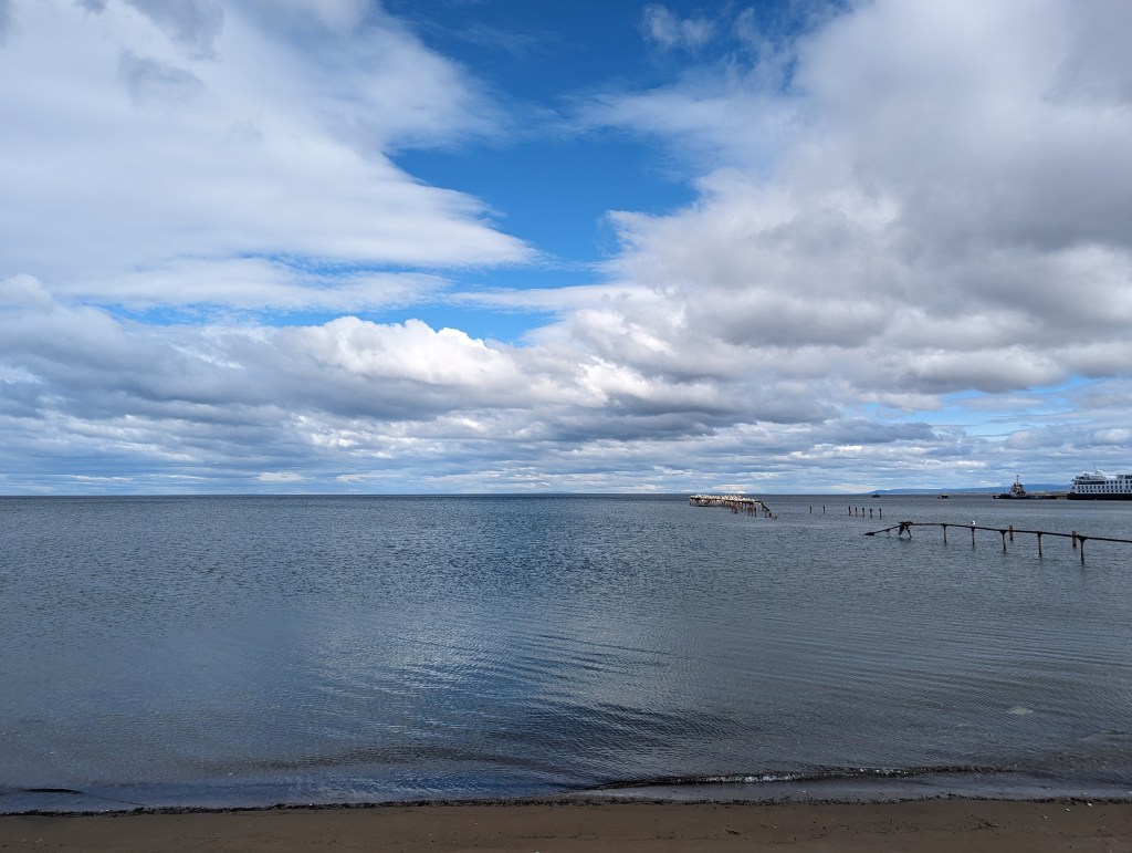 Außerdem sind wir noch ein bisschen am Strand entlang gelaufen und haben unsere Hände in die Magellanstraße gehalten, kalt, aber geht schon.