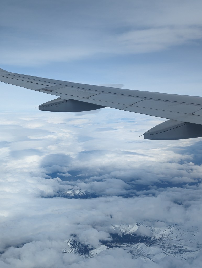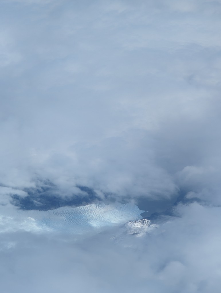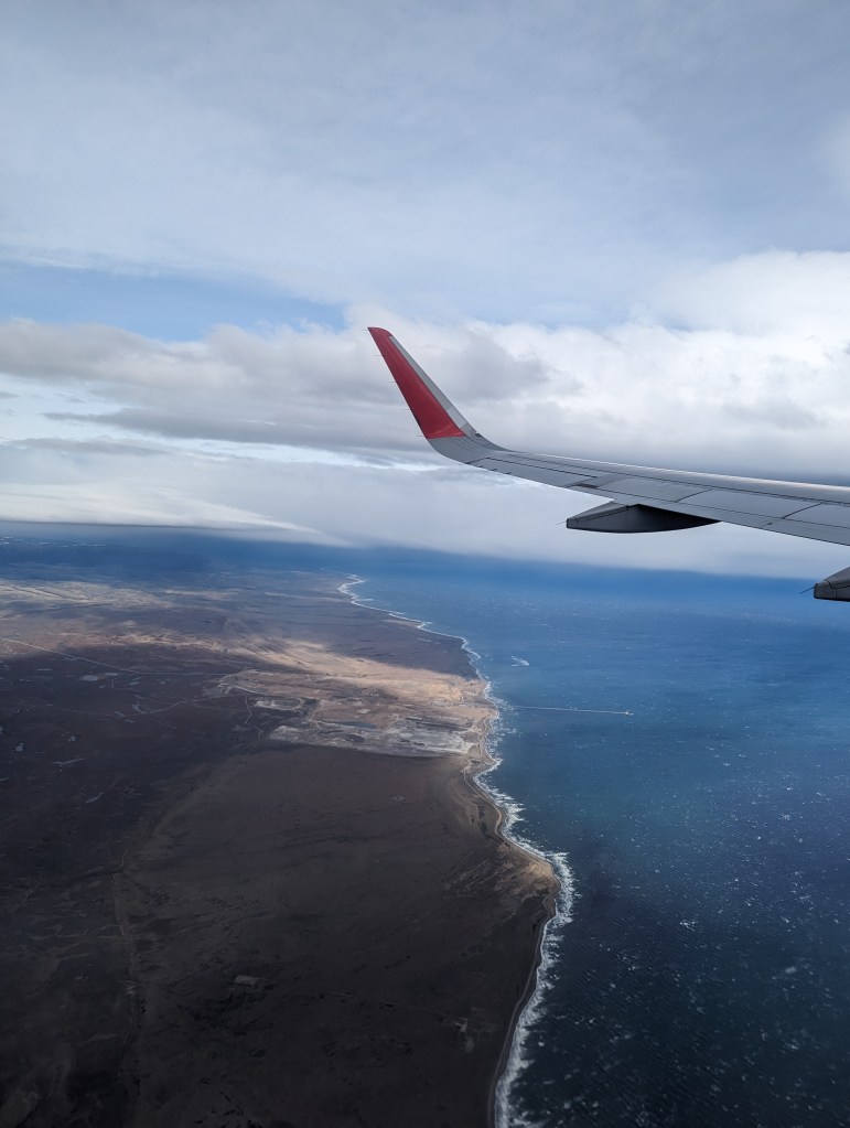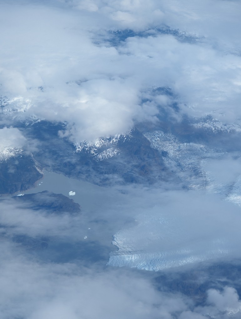 Anfangs haben wir noch eine gute Sicht auf das raue Patagonien, dann kommen die Wolken.