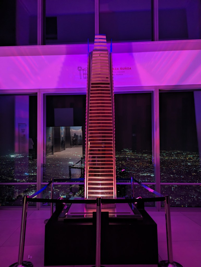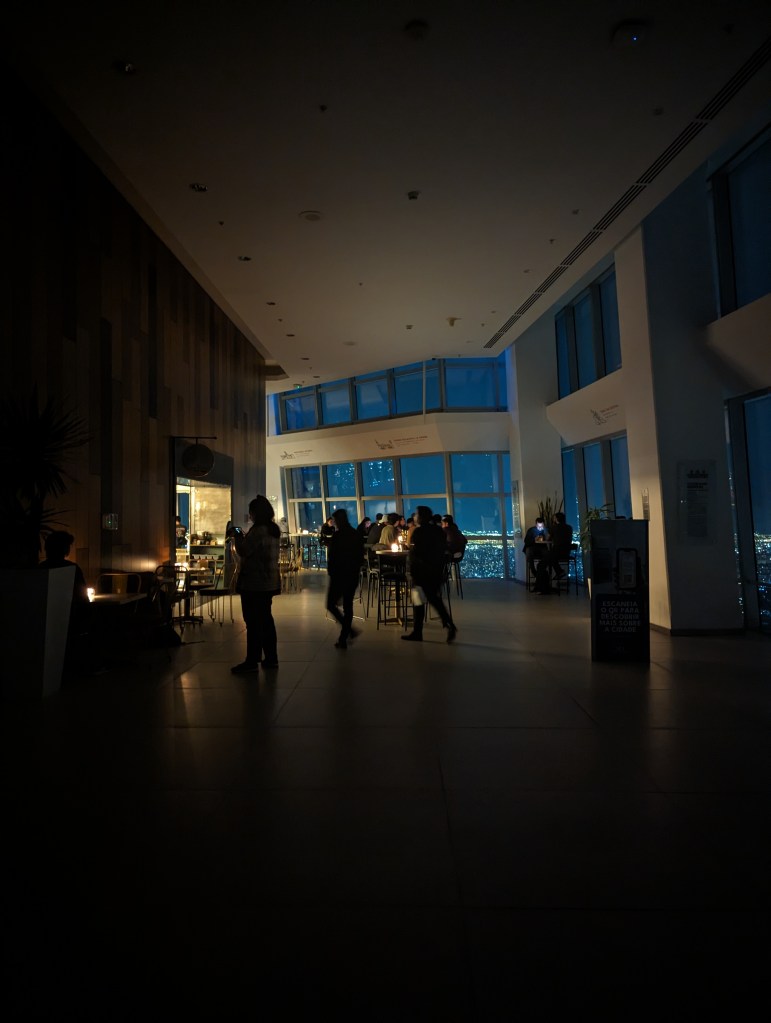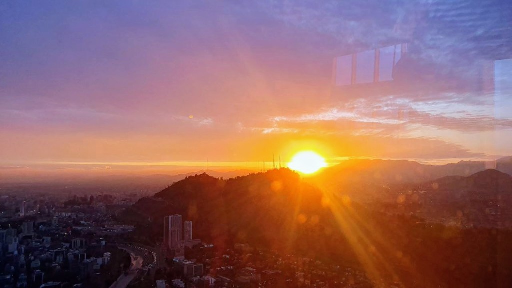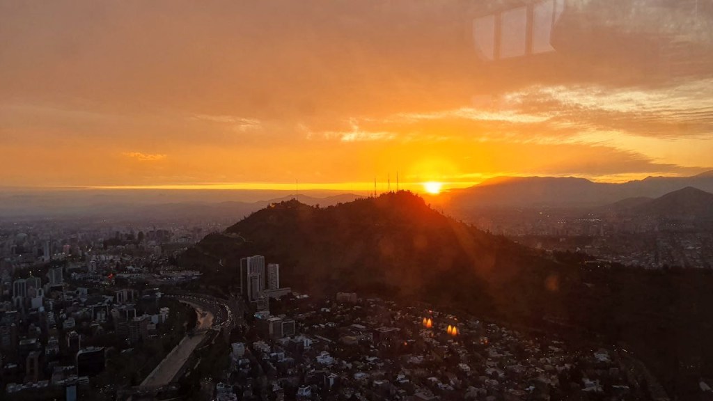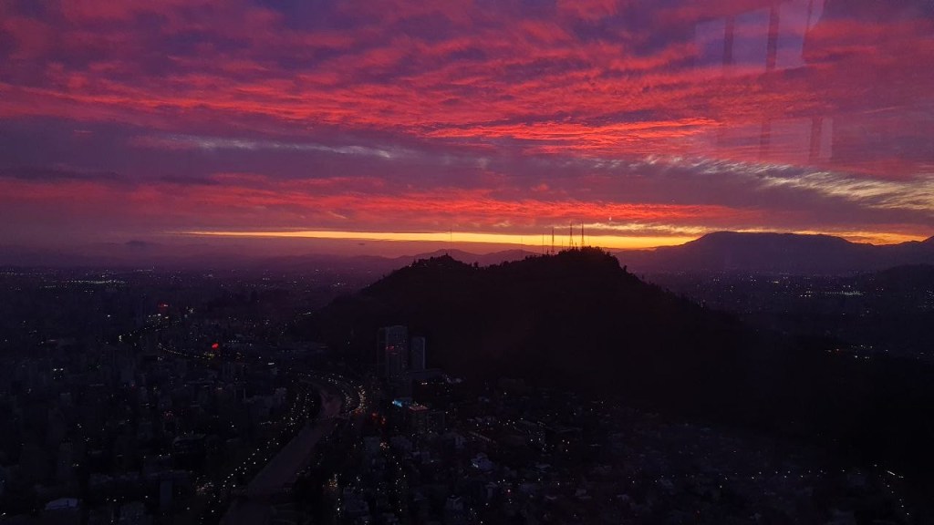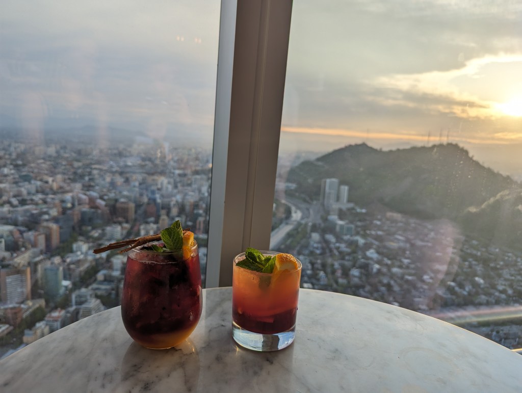 Mit dem Aufzug ging es nach oben in den 62 Stock. Hier hatten wir einen bombastischen Rundumblick auf Santiago. Die hohen Berge waren leider in Wolken, trotzdem toll.