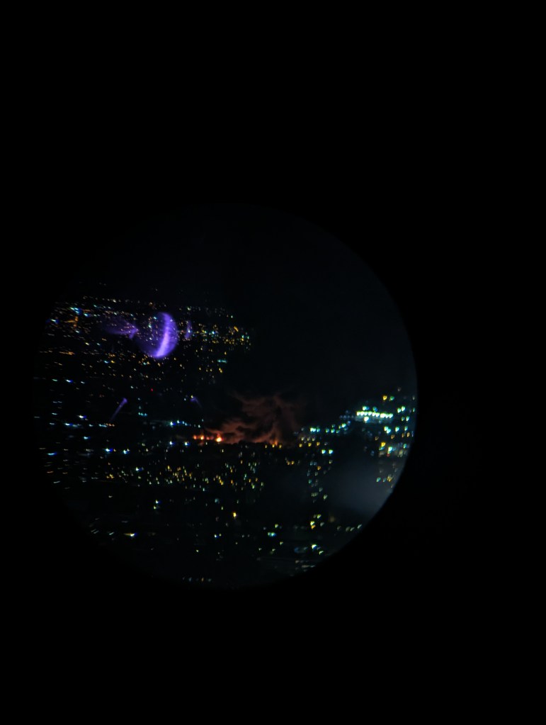 In der Ferne sahen wir dann eine riesige schwarze Rauchwolke und ein riesiges Feuer, eine Fabrik + die umliegenden Gebäude standen in Flammen.