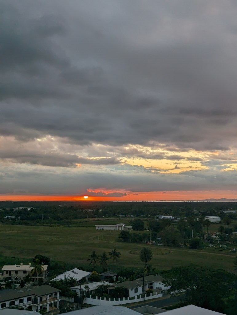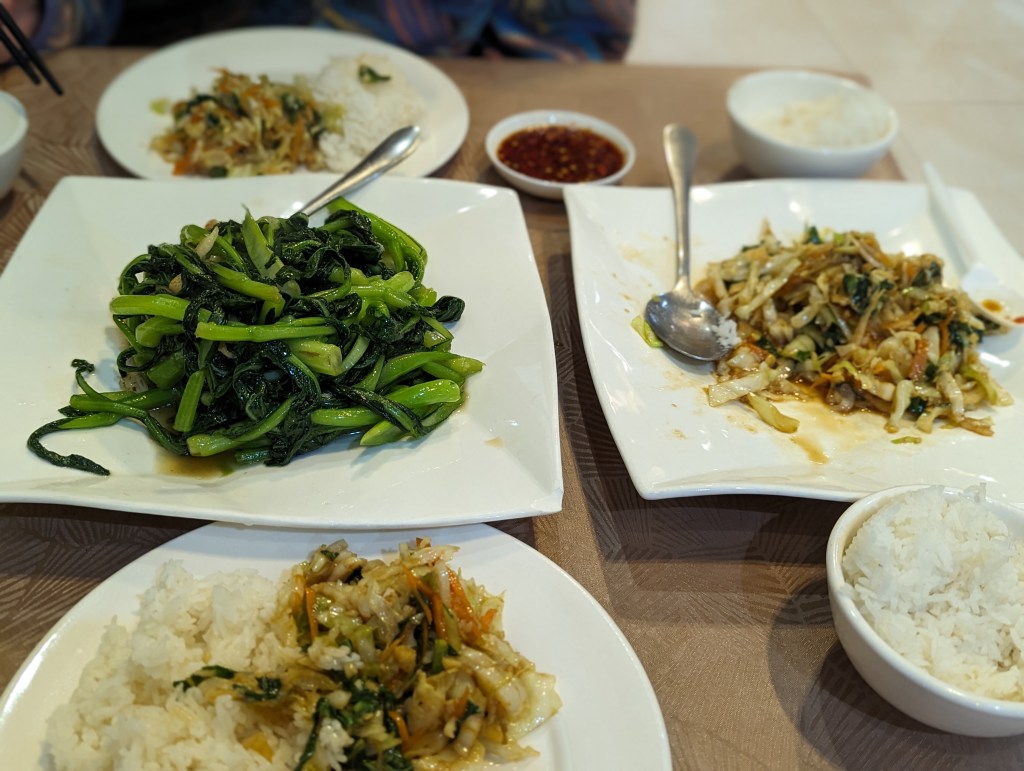 Zum Essen gehen wir ins zweite Restaurant im Hotel. Es gibt chinesisch. kohllastiges Chop Suey Gemüse und gebratenen Pak Choi mit Knoblauch. Dazu Reis und tatsächlich extrem scharfe Chilisauce. Sehr lecker. Kosten, um die 55 Fiji Dollar.