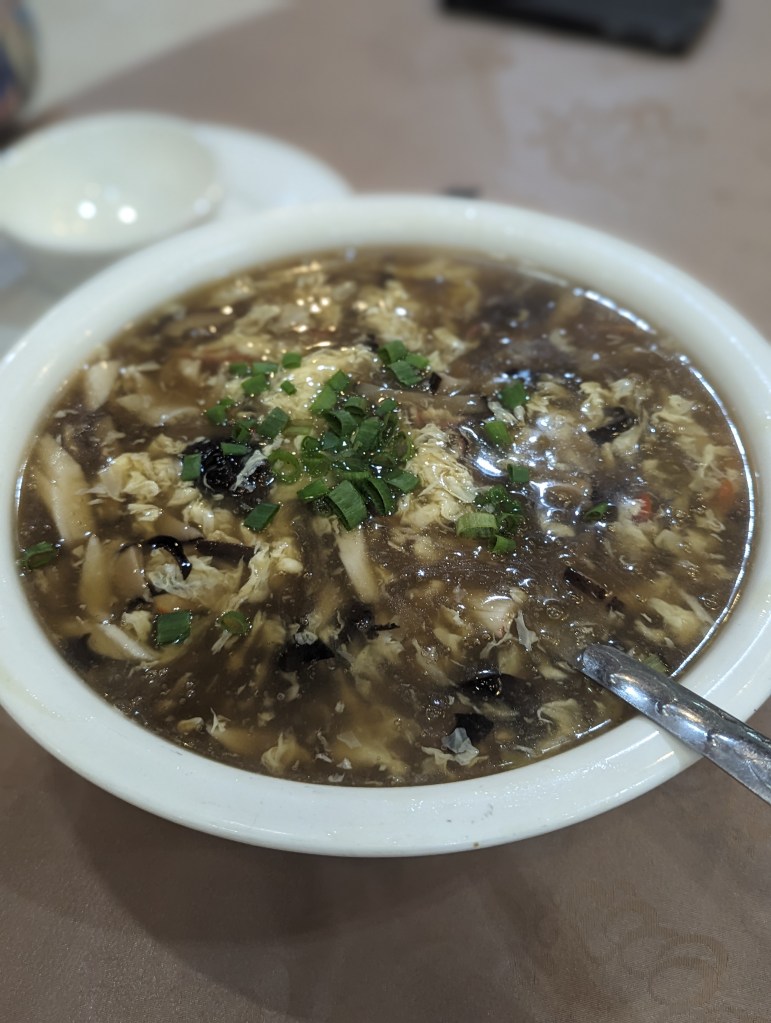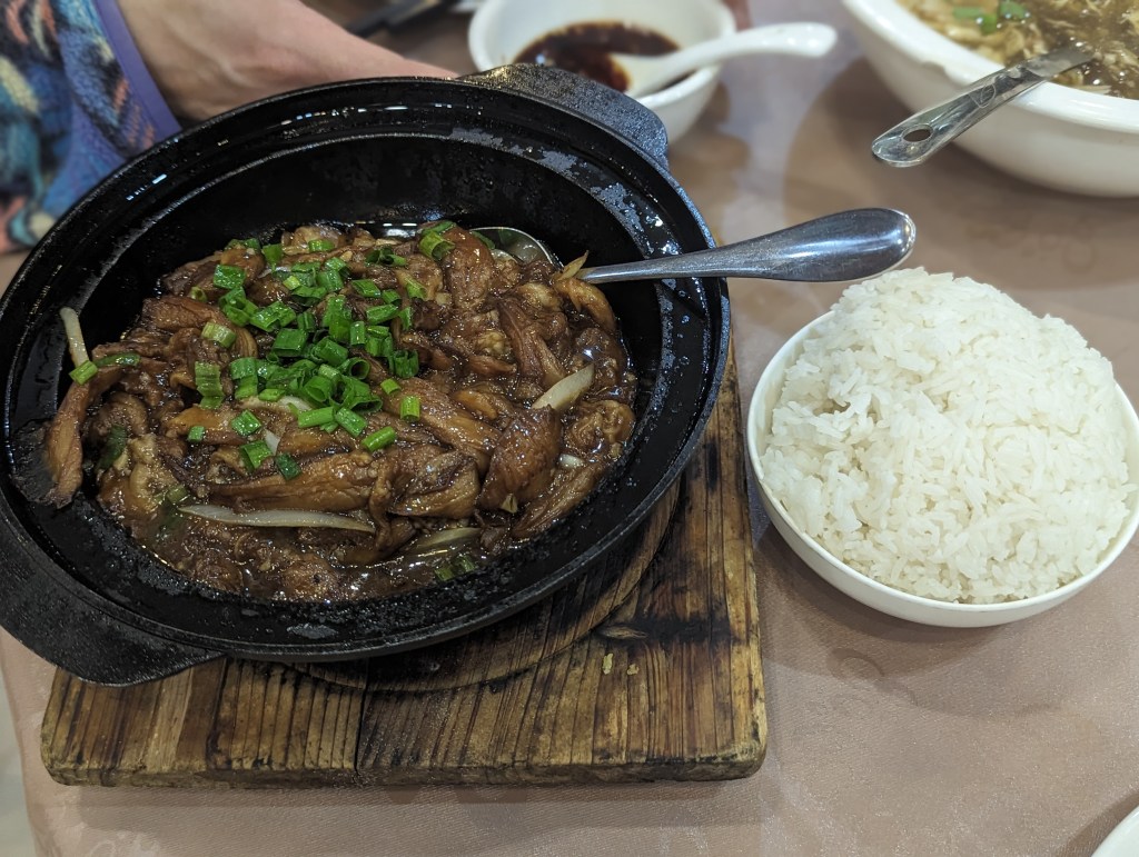 Abends gingen wir wieder ins chinesische Restaurant. Wir teilten uns einen sehr sehr leckeren Auberginenschmortopf mit Reis. Außerdem noch eine sauer-scharfe Meeresfrüchtesuppe. Und was für eine riesige Portion Suppe das war, daran hätte sich eine ganze Familie problemlos satt essen können.