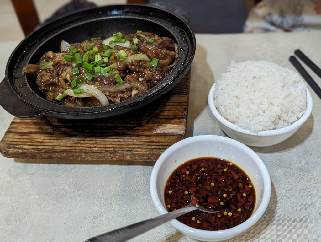 Dann ging es wieder zum Chinesen, heute gab es noch mal Aubergine und für Mira Reisbandnudeln.