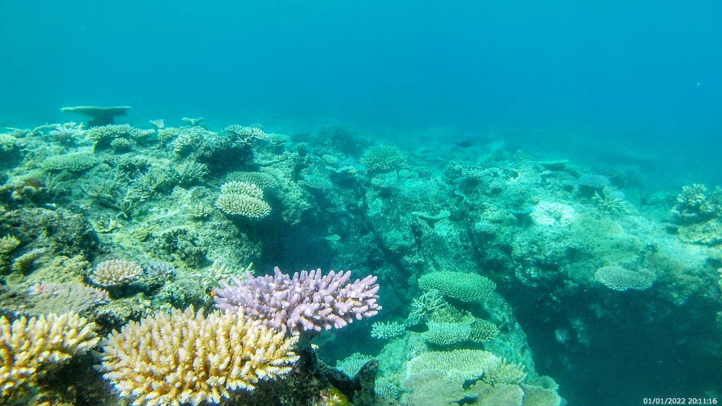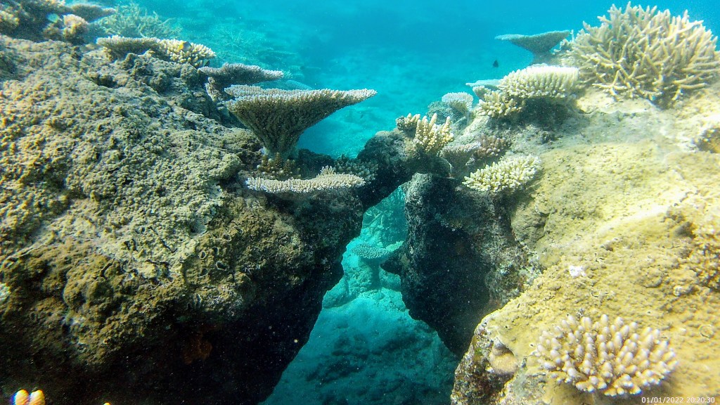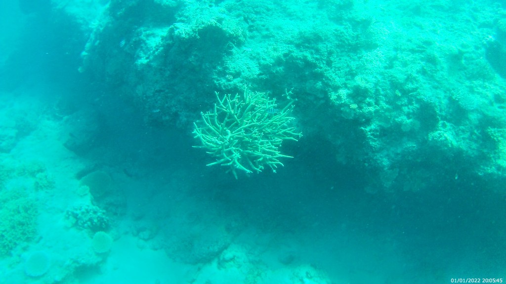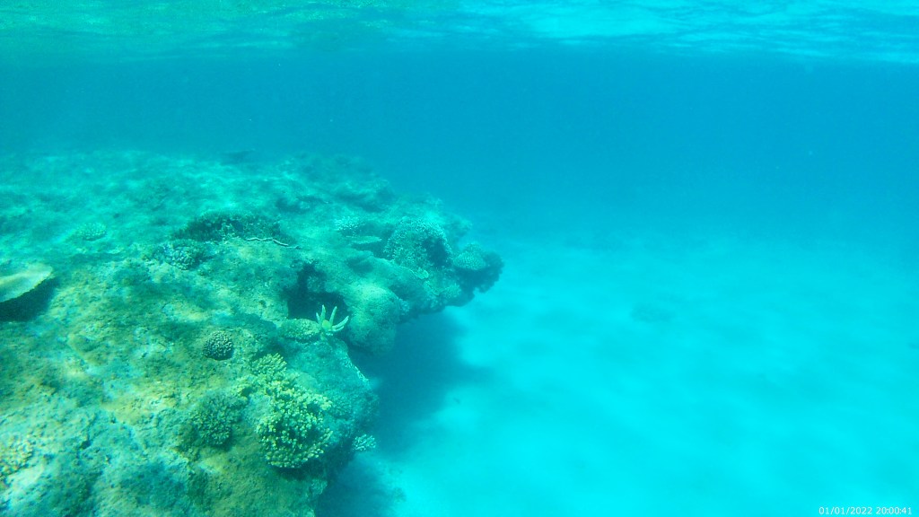 Heute ist es sehr windig und der Einstieg schwierig, da überall Korallen sind und das Wasser nicht tief ist.