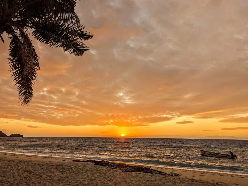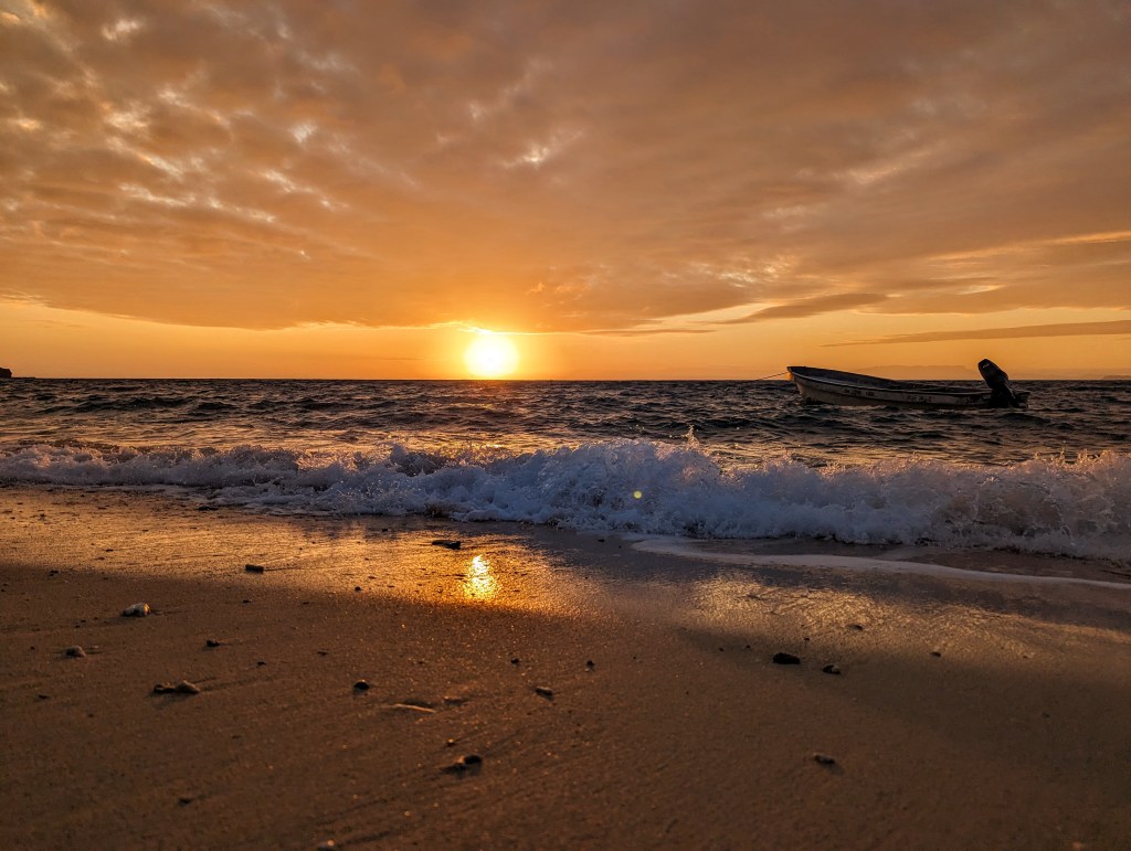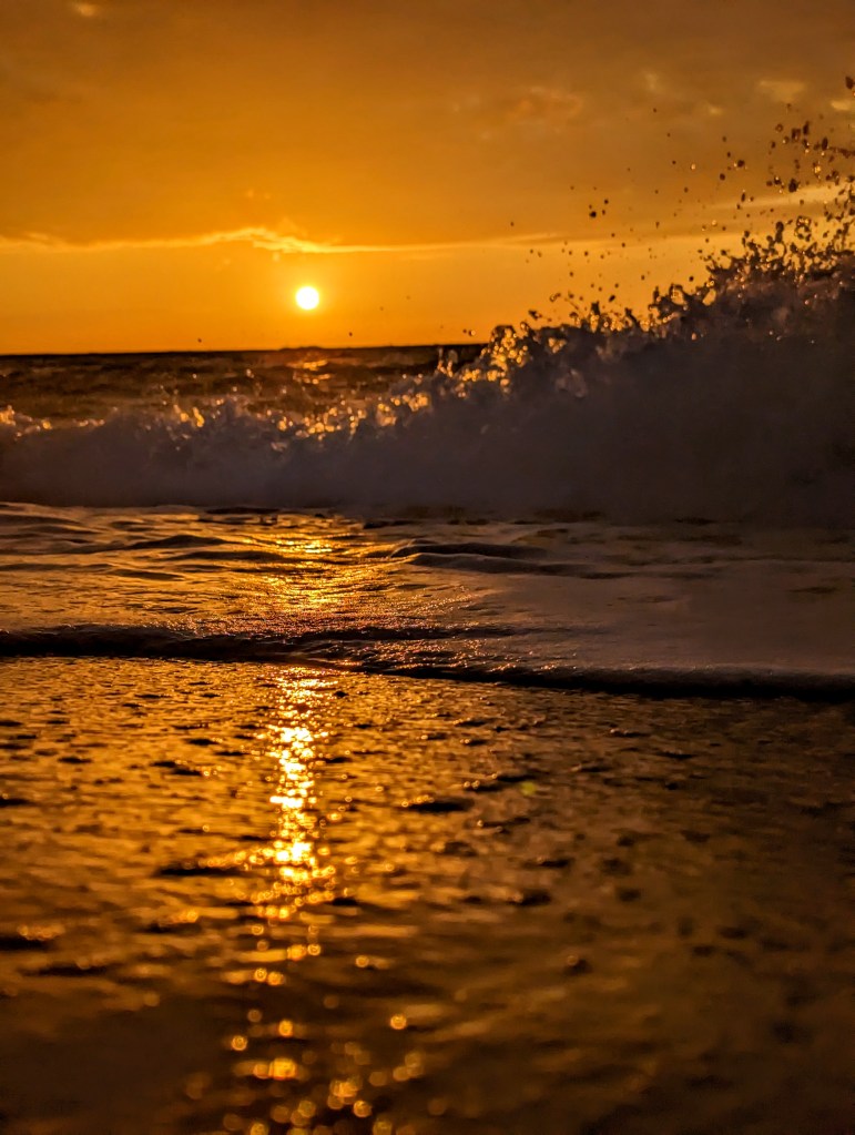 Wir gingen runter zum Strand, es war sehr windig. Gegen 5:45 Uhr sahen wir dann einen wundervollen Sonnenaufgang.
