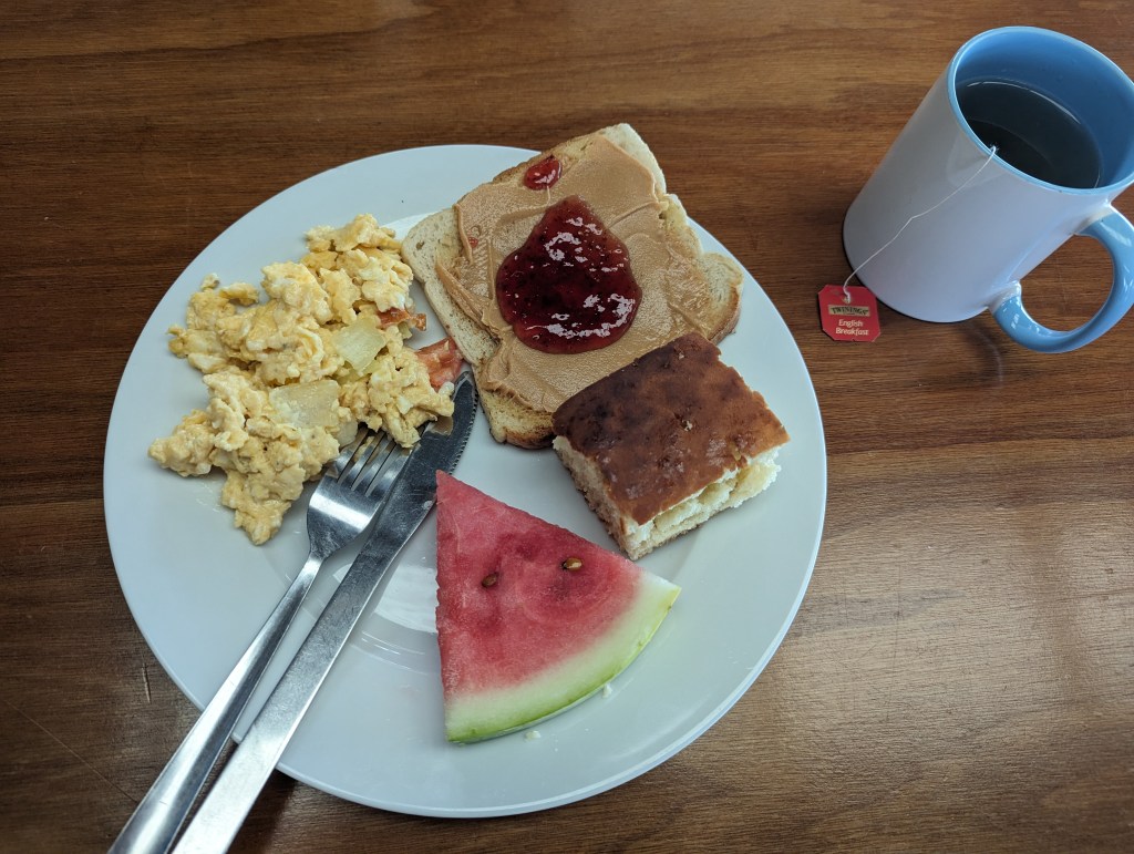 Danach legten wir uns noch mal ein bisschen hin, bis es dann um 8 Uhr Frühstück gab.