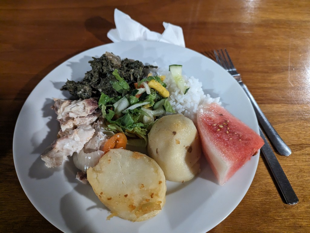 Um 12 Uhr war Zeit fürs Mittagessen. Anscheinend wurden wir vergessen, denn es gab nur Fleisch, aber die Gastgeberin entschuldigte sich tausendmal und machte uns noch was.