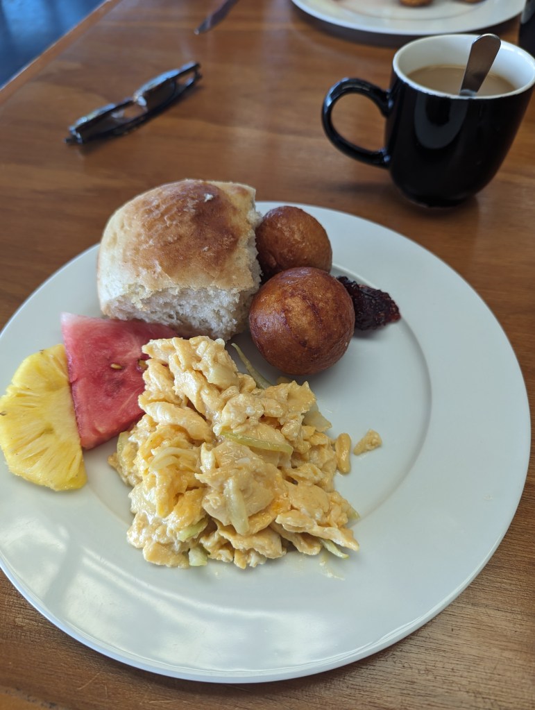 Zum Frühstück gab es eine Art Pancakebällchen, ein bisschen ähnlich zu Quarkbällchen, die waren sehr lecker.
