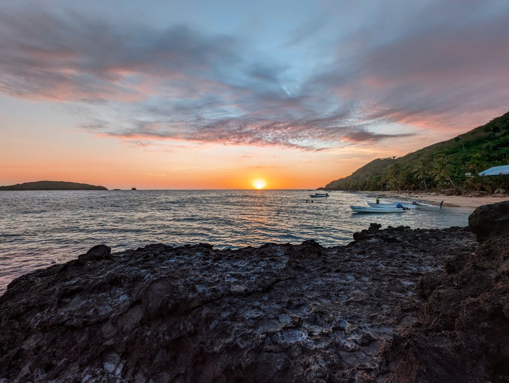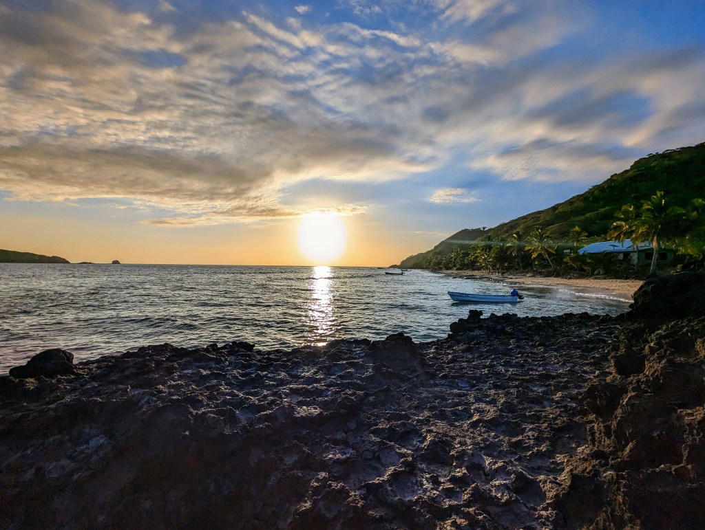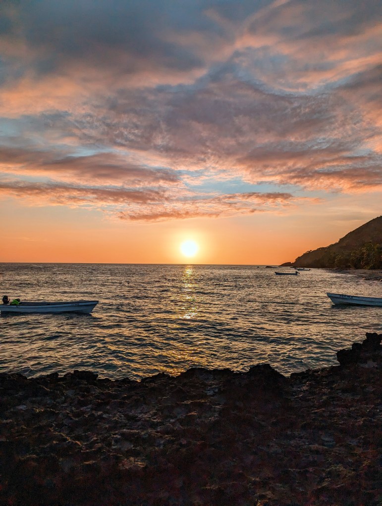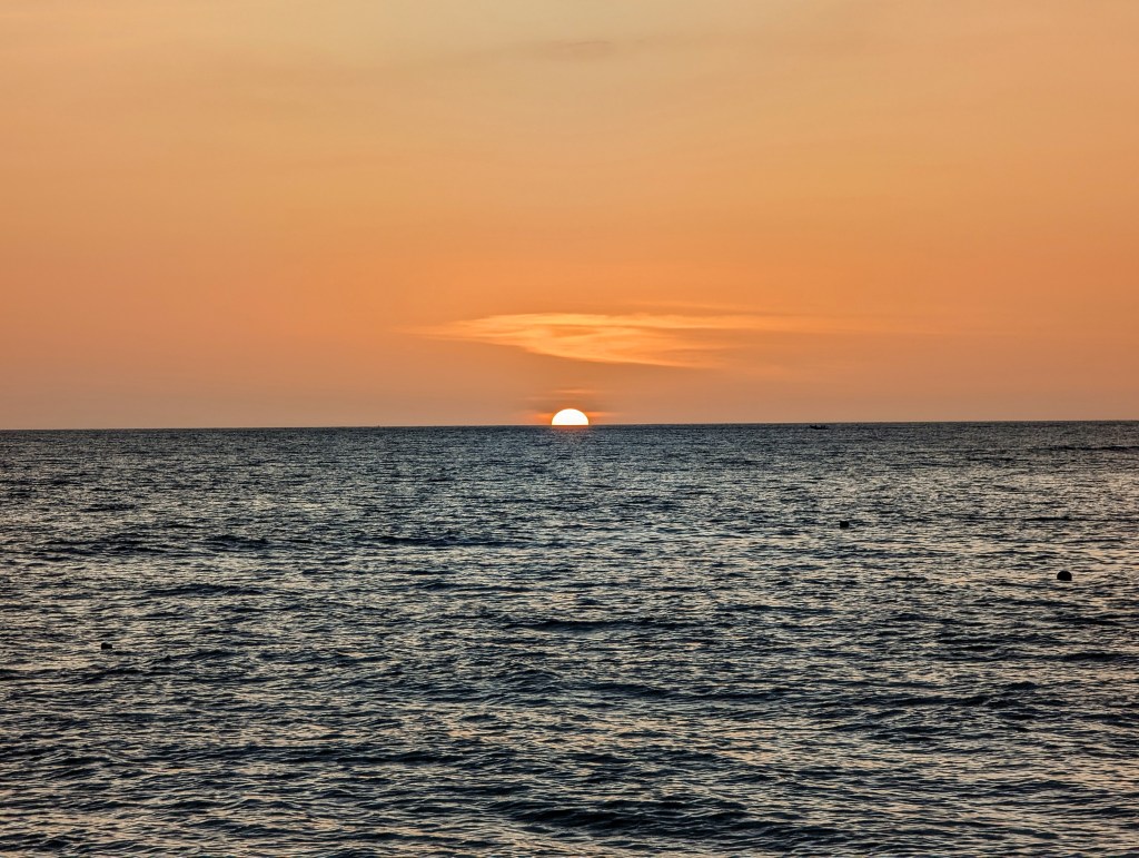 Zum Sonnenuntergang liefen wir noch mal den Strand entlang, bis zu einer Biegung, hier kann man die Sonne perfekt beobachten. Sehr schön.