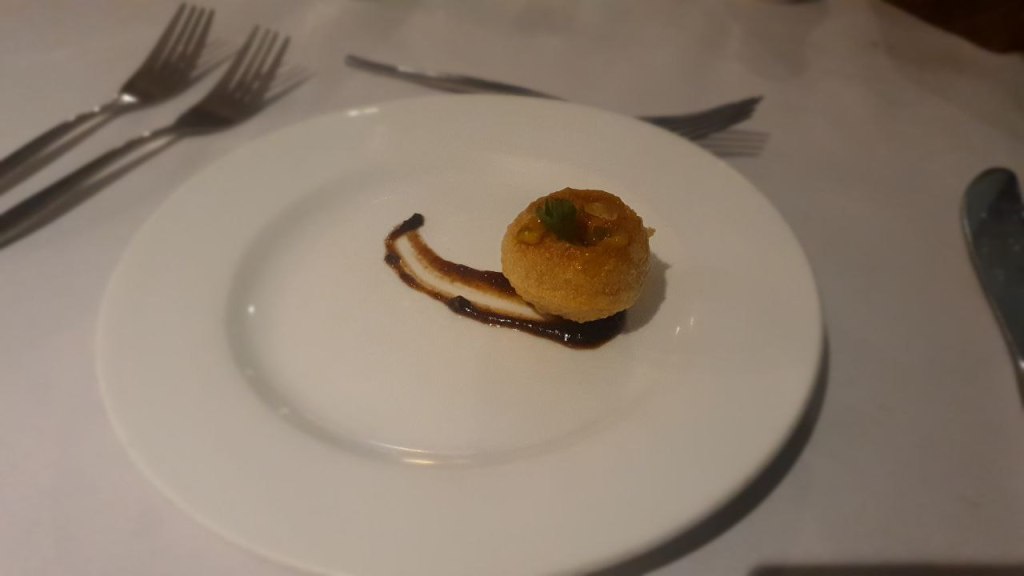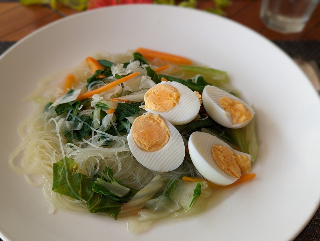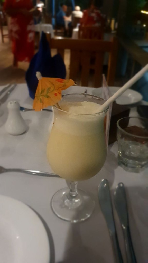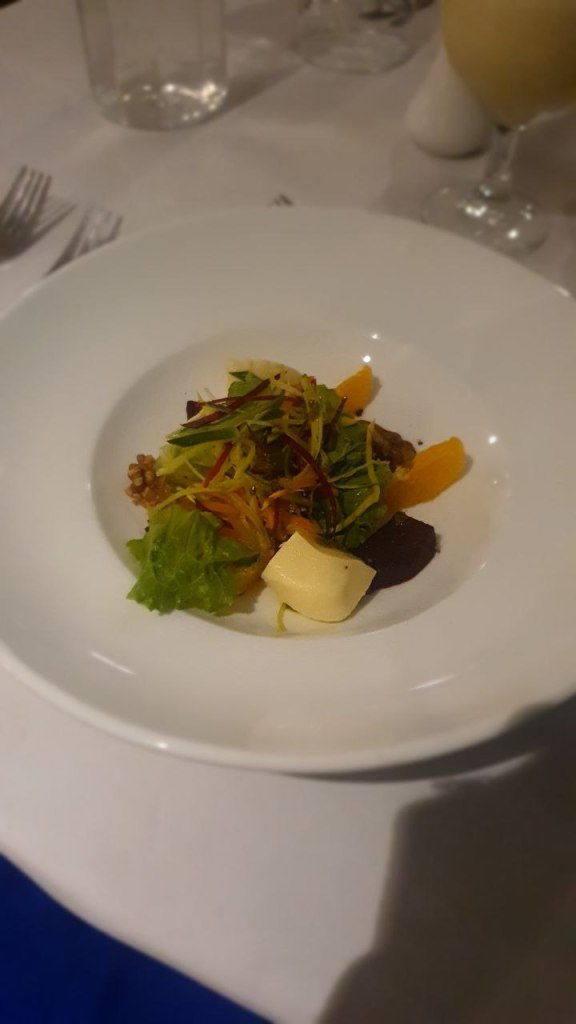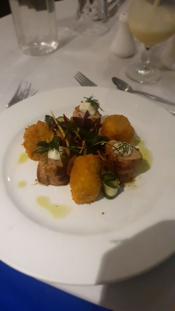 Abends hatte Fabi noch ein üppiges Essen mit roter Beete Salat, Thunfisch und Kroketten und Nachspeise. Mira hat leider verzichten müssen wegen Bauchi.