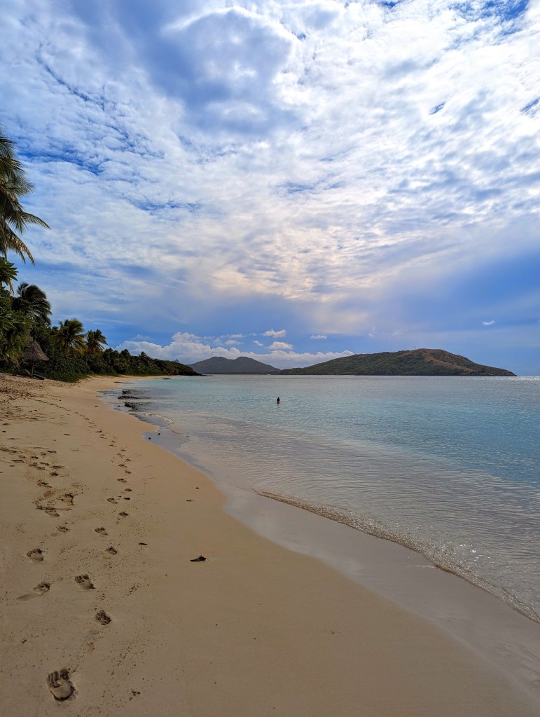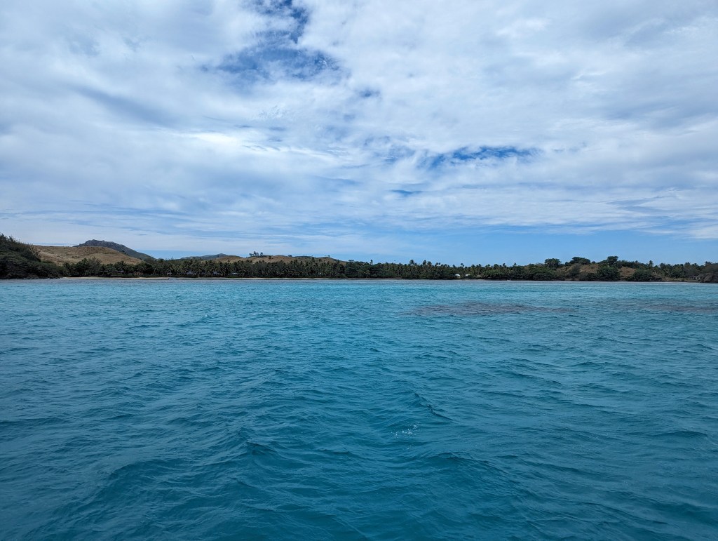 Bei Ankunft strahlt uns eine wirklich türkis blaue Bucht an.