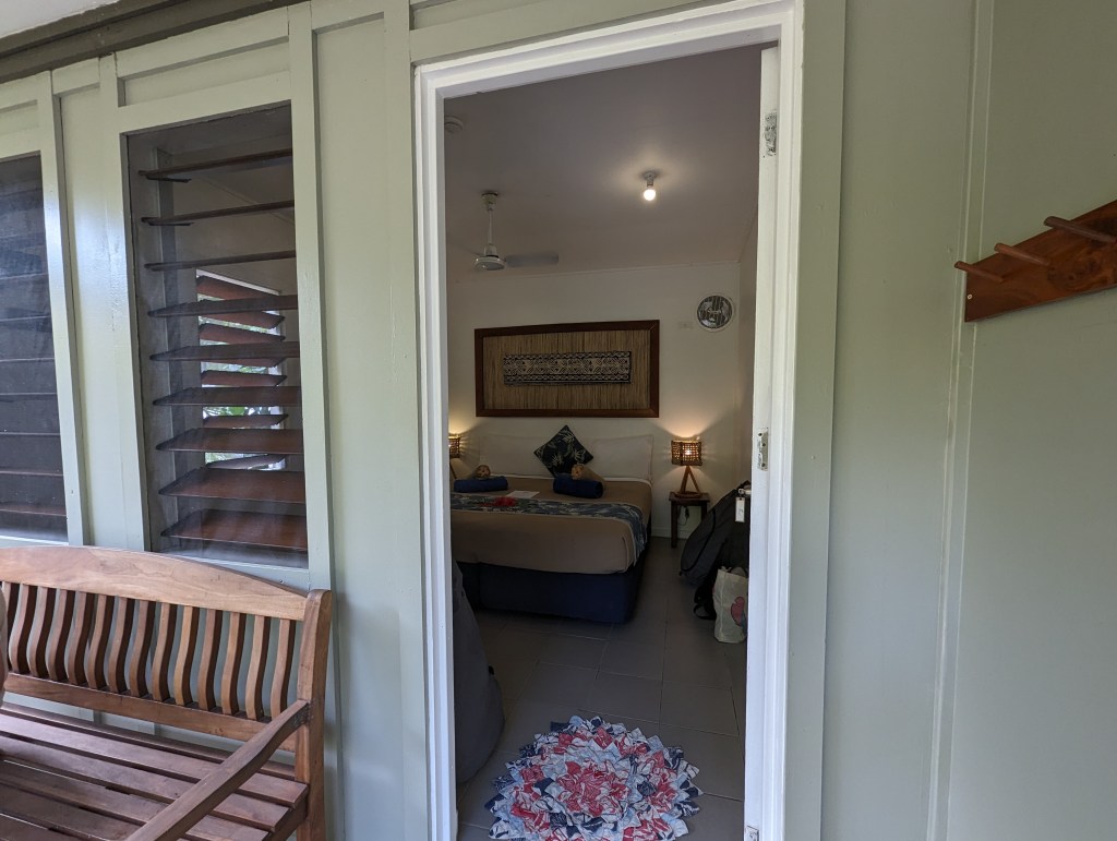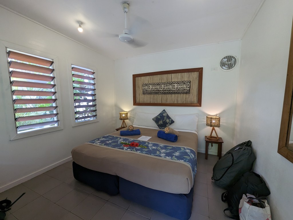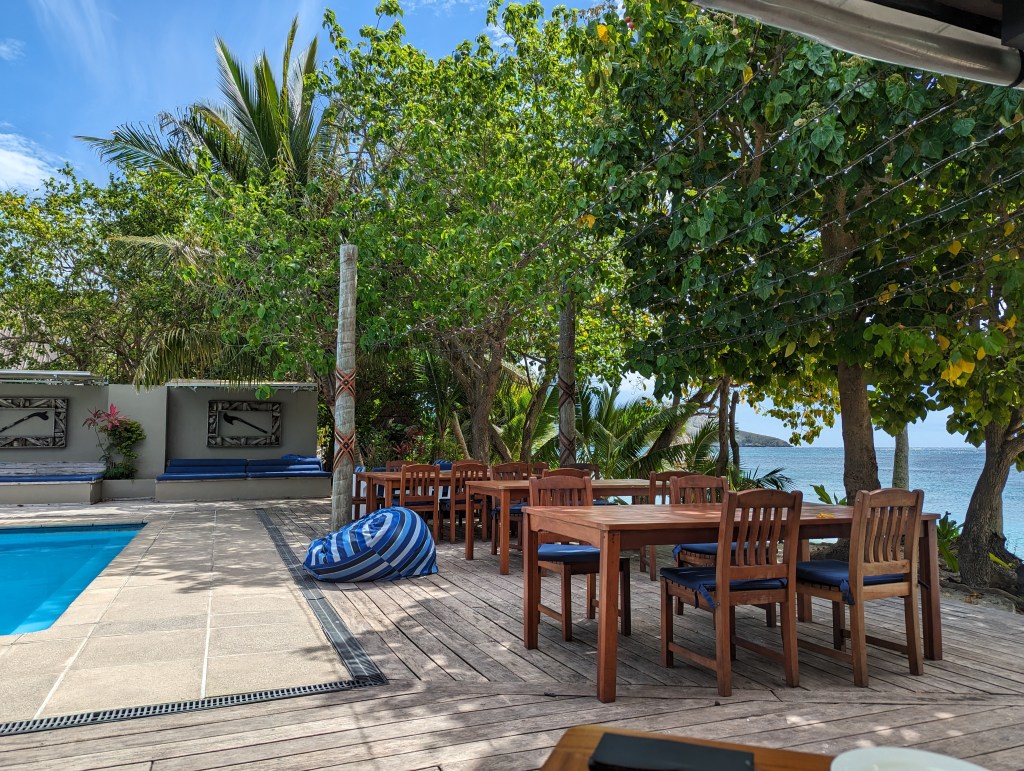 Das Blue Lagoon Resort ist schön, wirkt aber bisschen in die Jahre gekommen. Sandsäcke schützen den Strand.