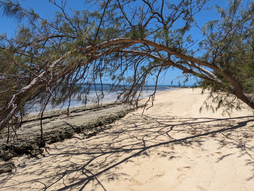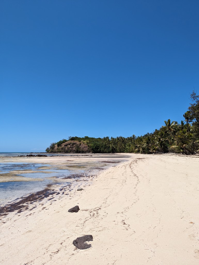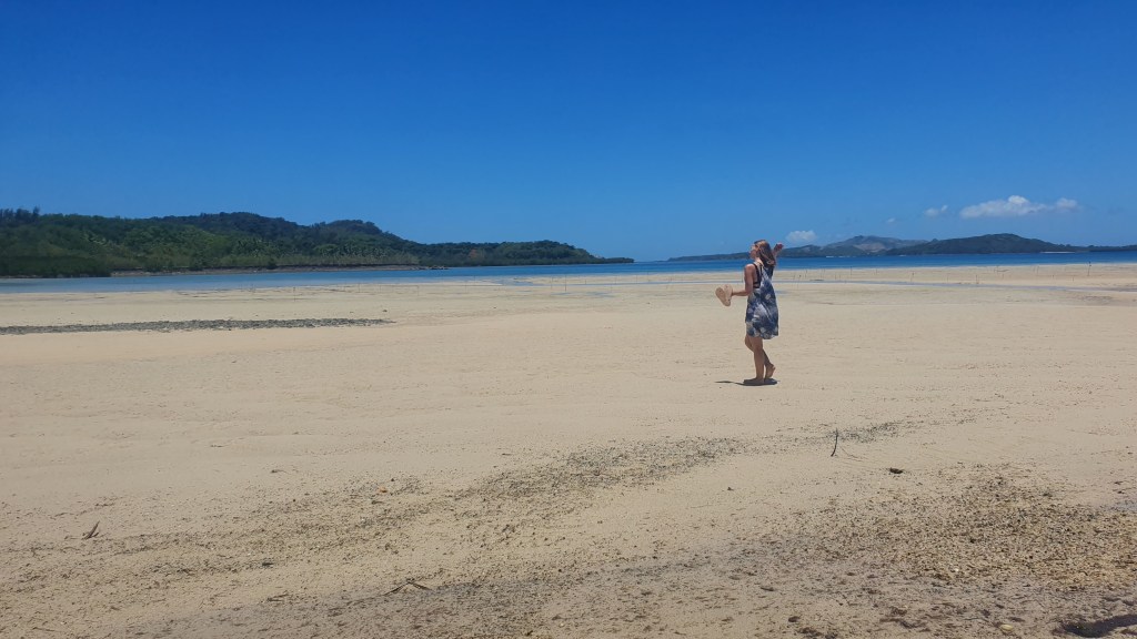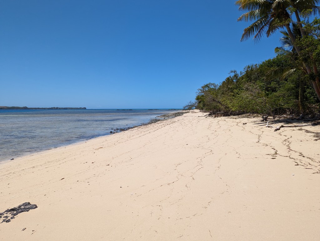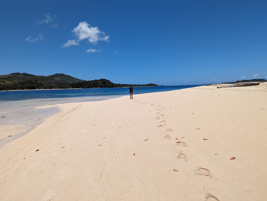 Dann geht es den Sandstrand weiter bis zur „Blue Lagoon“, nahe unserem Resort. Das Inland hier ist mit „Betreten verboten“ Schildern gesäumt. Dieses Gebiet ist für das Kreuzfahrtschiff reserviert.