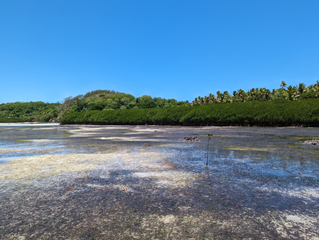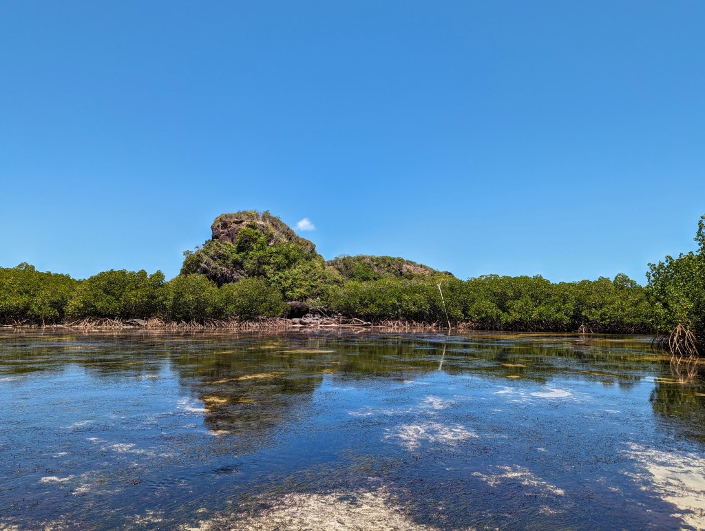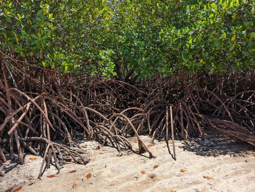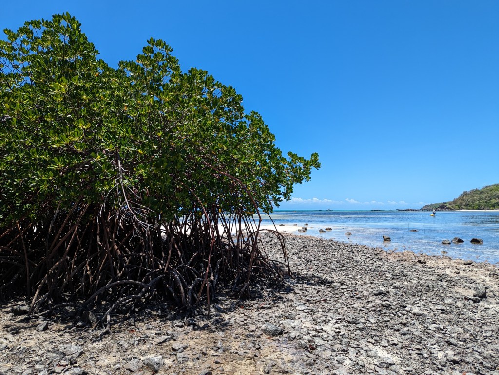 Über Sandstrände und viel Gestein erreichen wir den Mangrovenwald. Hier müssen wir doch Sumpf an den Mangroven entlangwaten, bis wir es zur Nachbarinsel „Turtle Island“ schaffen.
