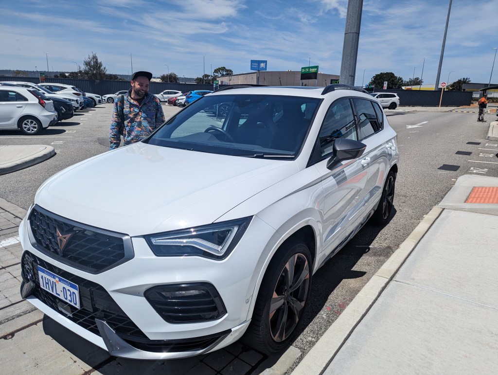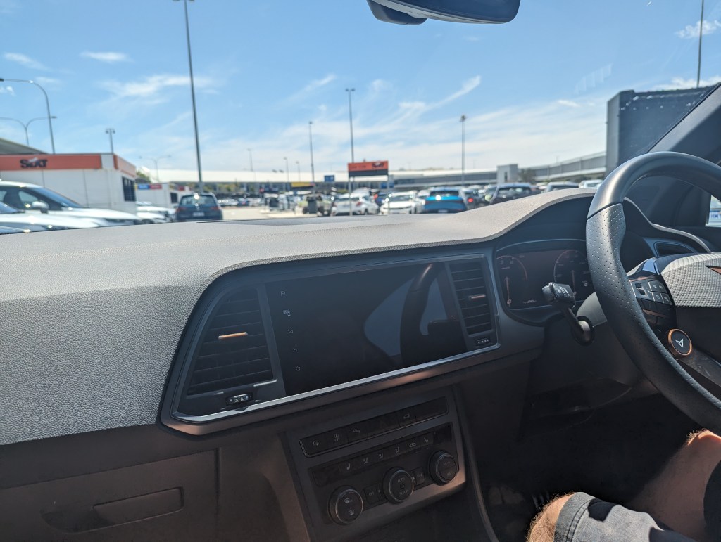 Um 11 Uhr nehmen wir den Flughafenshuttle und holen unser Auto ab. Wir bekommen ein Upgrade, einen Seat Ateca Cupra.