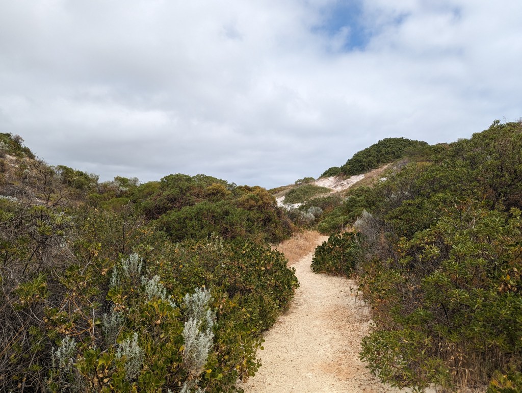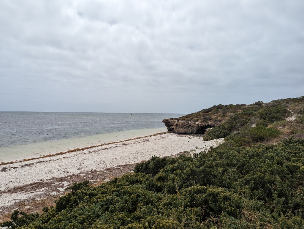 Wir finden ein schattiges Plätzchen zum chillen und legen uns vormittags noch mal kurz ins Zelt. Wird aber sehr schnell zu warm, also machen wir einen kleinen Spaziergang zum Strand und den Dünen. Sehr schön, viele Algen.