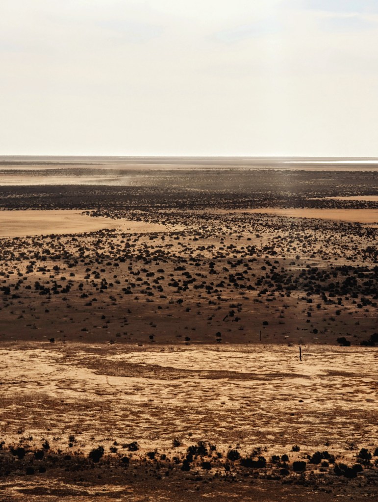 An einem Aussichtspunkt halten wir und haben einen tollen Blick auf das weite, trockene Land.