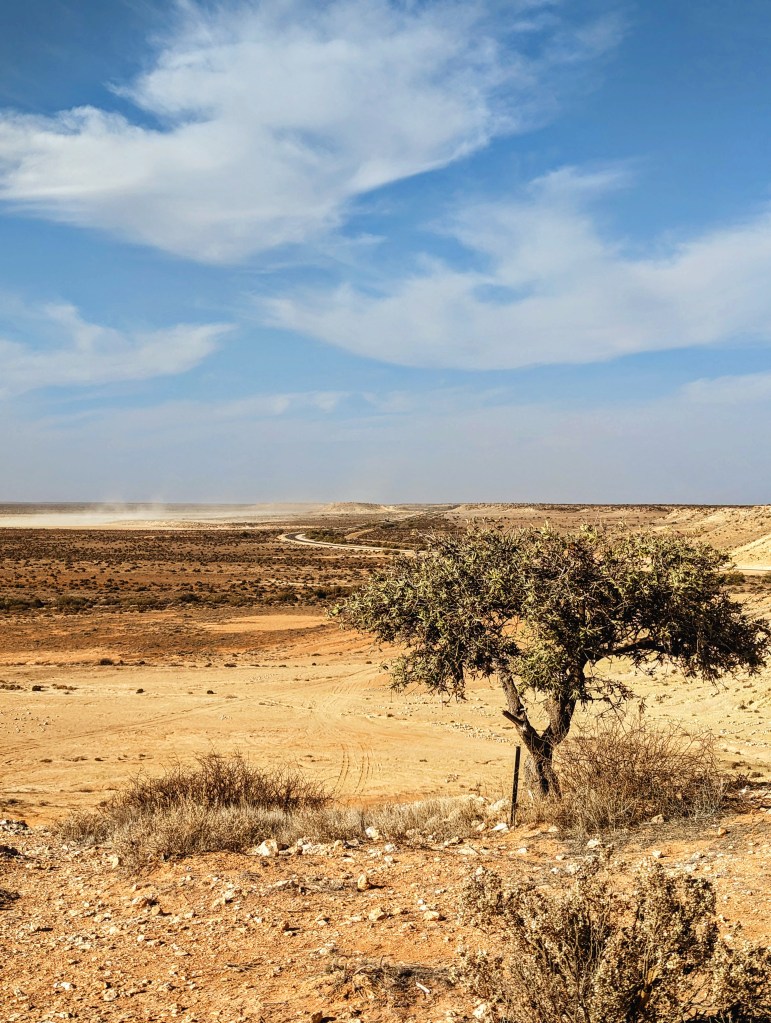 Der Weg führt uns durch einsame Steppe und Wüste und tatsächlich sehen wir ein Emu. Genauso schwer zu fotografieren wie auch die Nandus in Südamerika.