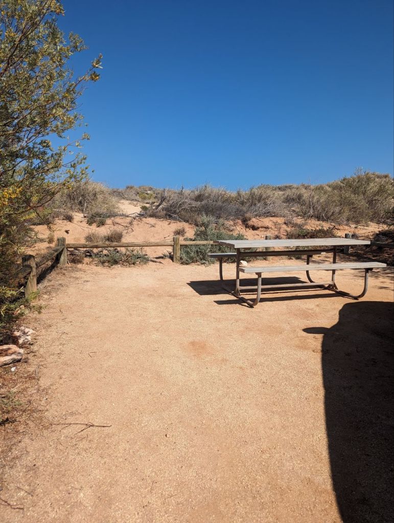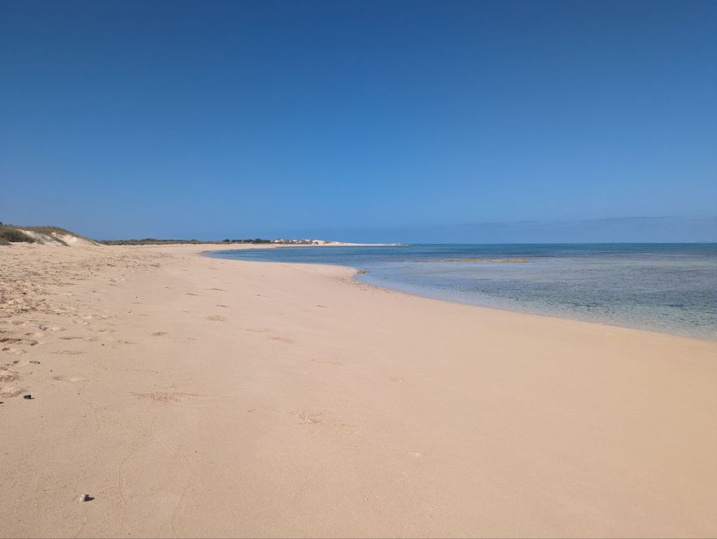 Morgens gucken wir noch kurz zum Strand bei unserem Campingplatz bevor wir aufbrechen.