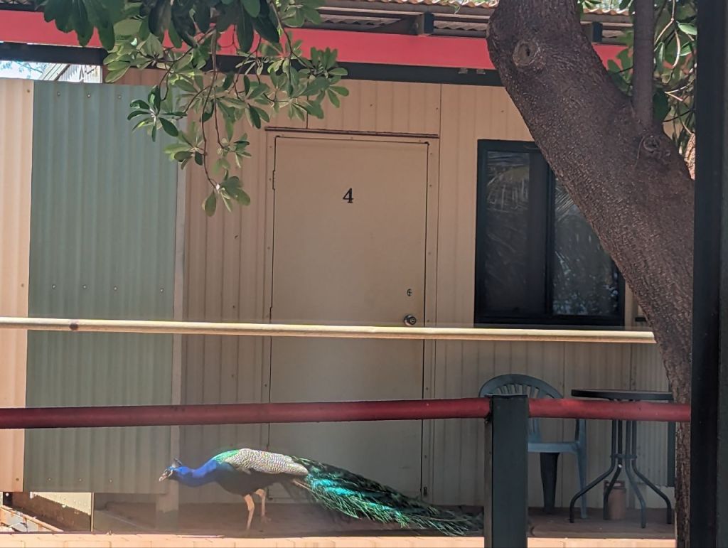 Stolze 42°C…es gibt kalte Pepsi und Egg Sandwiches und…einen Pfau der uns eine richtige Modenschau gibt.