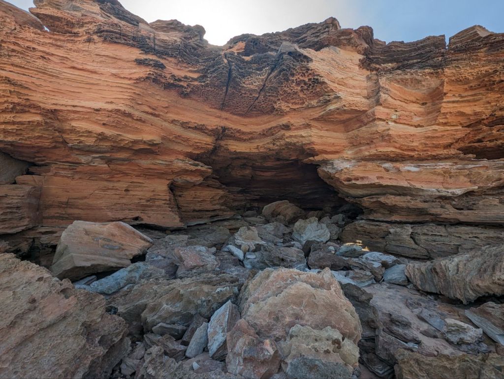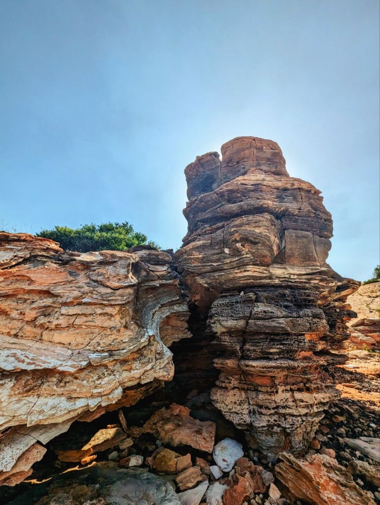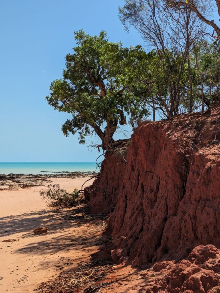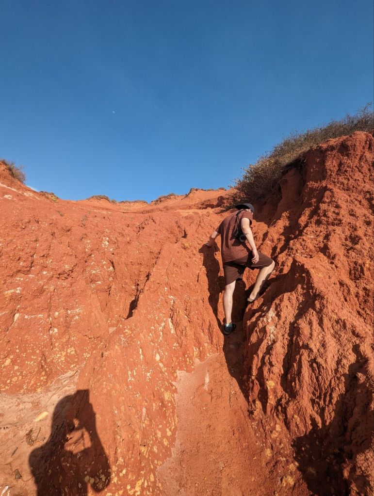 Anschließend geht’s weiter zum Reddell Beach. Der Abstieg auf den Strand gestaltet sich kletterintensiv und endet mit einer vom Gestein rot gefärbten Hose.