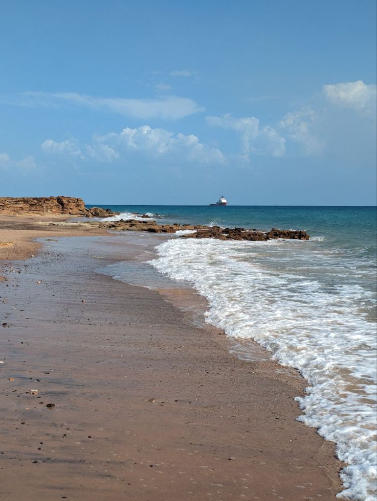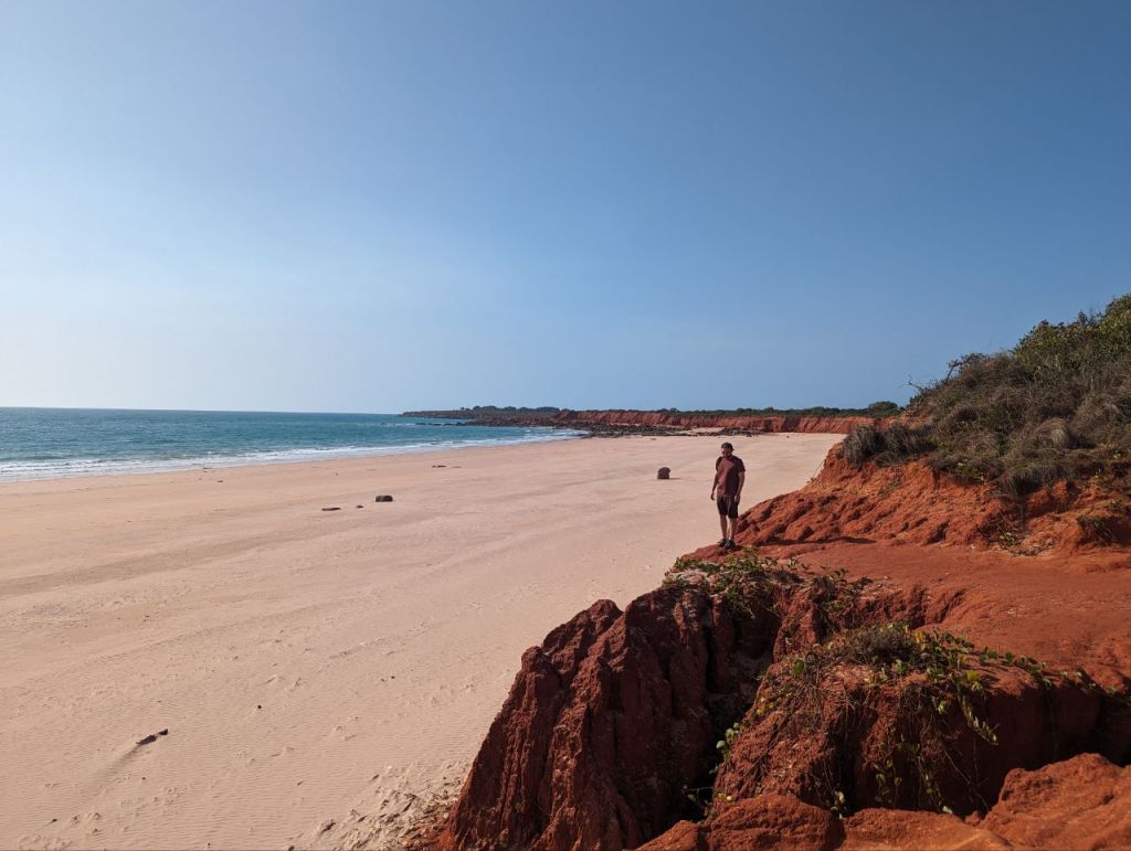 Im Anschluss laufen wir zum Town Beach. Die Ebbe ist gerade ungefähr auf Maximum, gefühlt könnte man bis zum Horizont durchs Meer laufen, bis es tief wird.