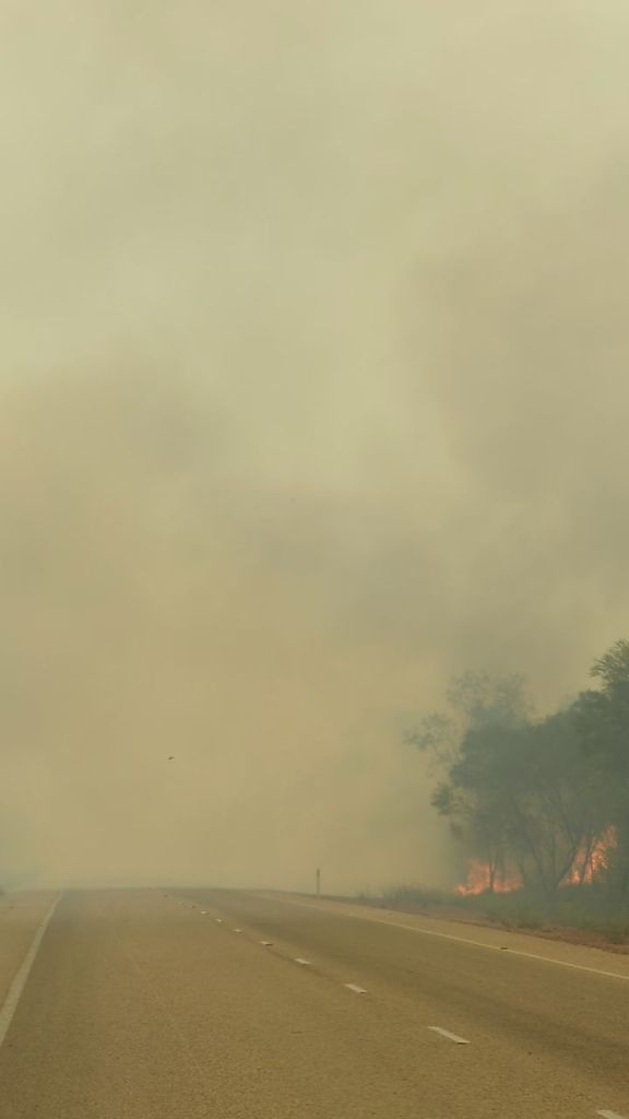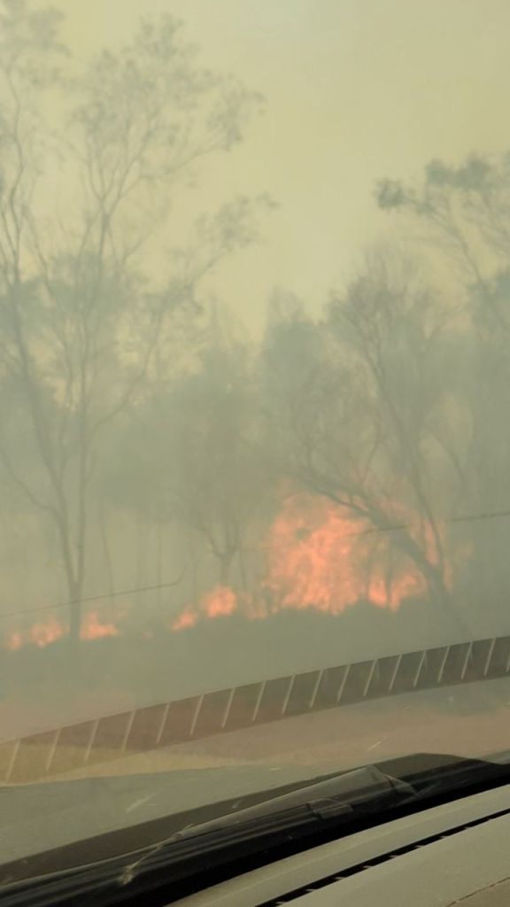 Dann machen wir uns auf den Weg durchs Inland in den Süden. Nach einer Weile wird es immer düsterer – es brennt. Zum Glück ist die Straße aber noch befahrbar. Wir fahren durch Rauch am Feuer vorbei, selbst mit Innenzirkulation merkt man den Rauch beim Atmen.