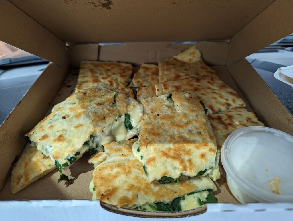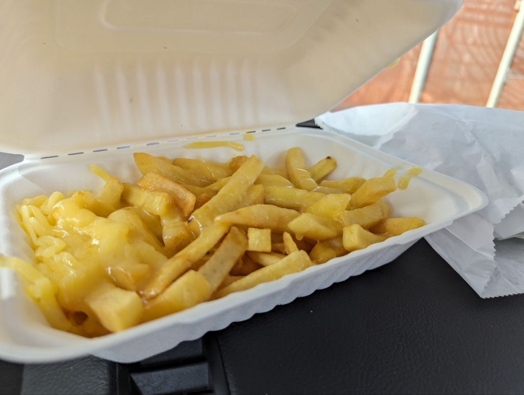 In der Stadt Newman halten wir und holen uns beim Kebabladen eine riesige Portion Gozlem (Champignon, Spinat, Feta), einen Fischburger und Käsepommes. Ist alles ein bisschen viel, aber lecker.