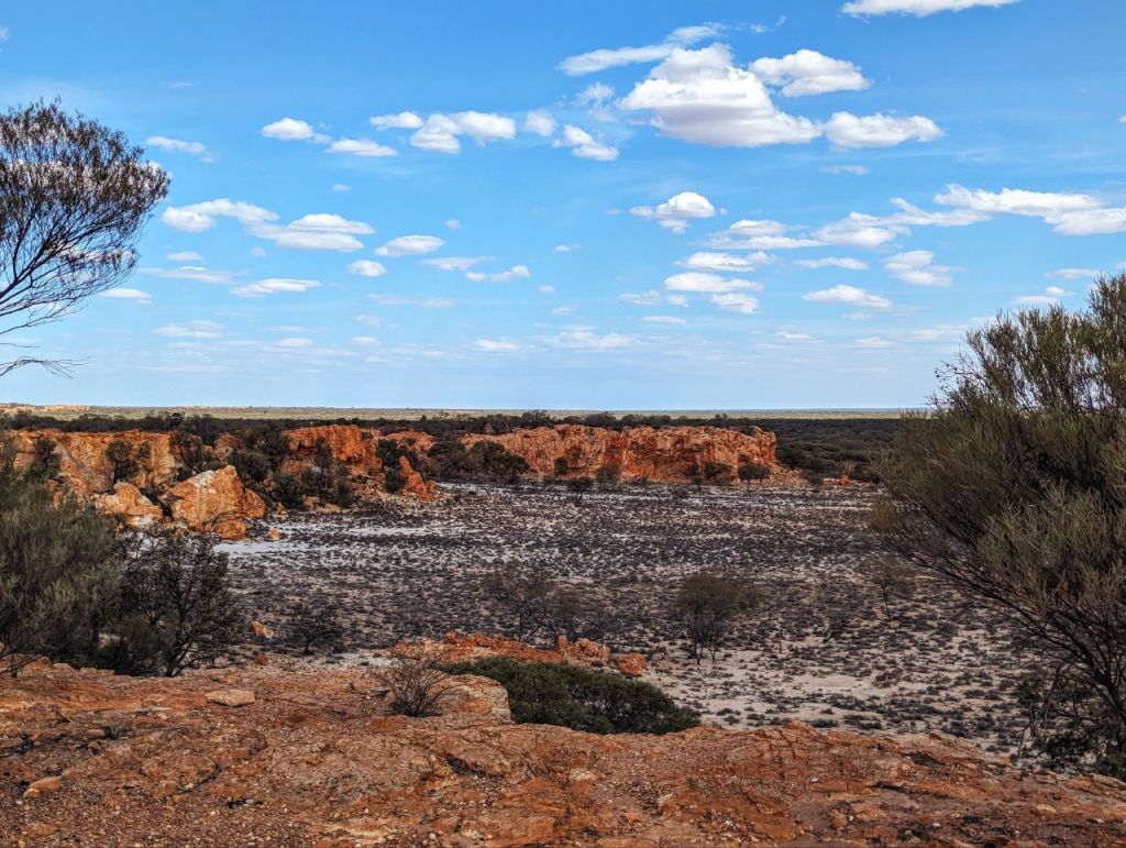Auf dem Weg fahren wir durch zwei Geisterstädte, Cue und Sandstone.