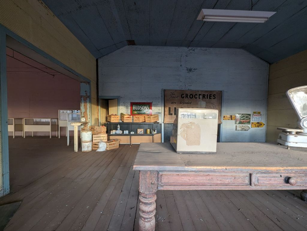 Bei dieser handelt es sich um eine Art Freilandmuseum. Wir hatten uns schon im Voraus vorgenommen, sie zu besichtigen. Es ist wirklich interessant, wir laufen durch die alte Minenstadt und gehen in die Gebäude.