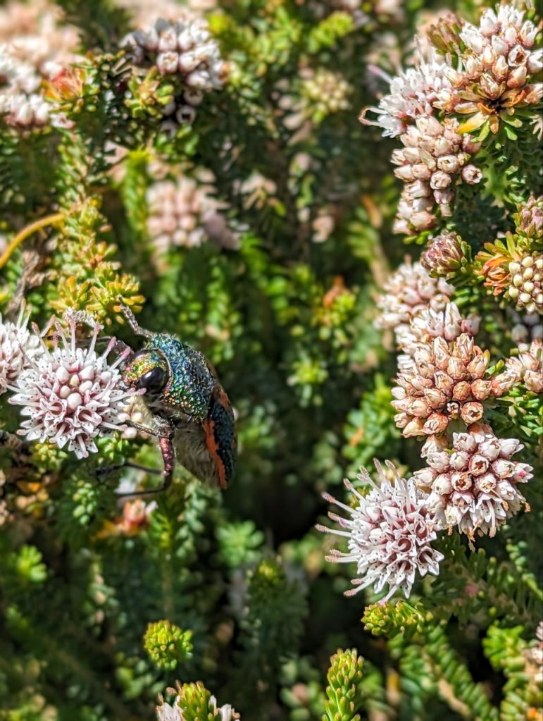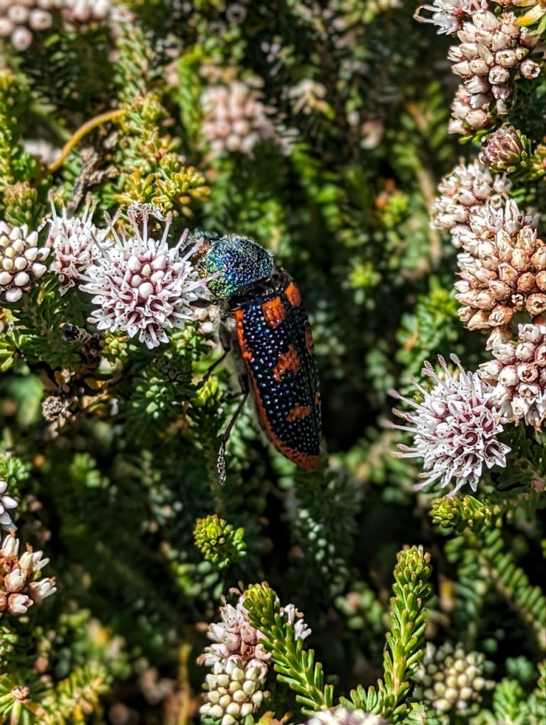 Danach sehen wir uns das Thistle Cove an und entdecken am Weg einen wunderschönen Prachtkäfer.