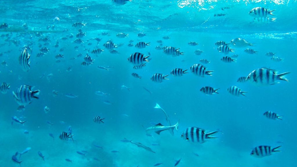 Wir sehen einen wunderschönen Sonnenauf- und untergang und unternehmen eine Haischnorcheltour, das war sehr cool.