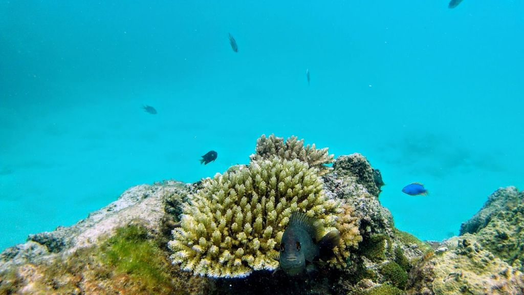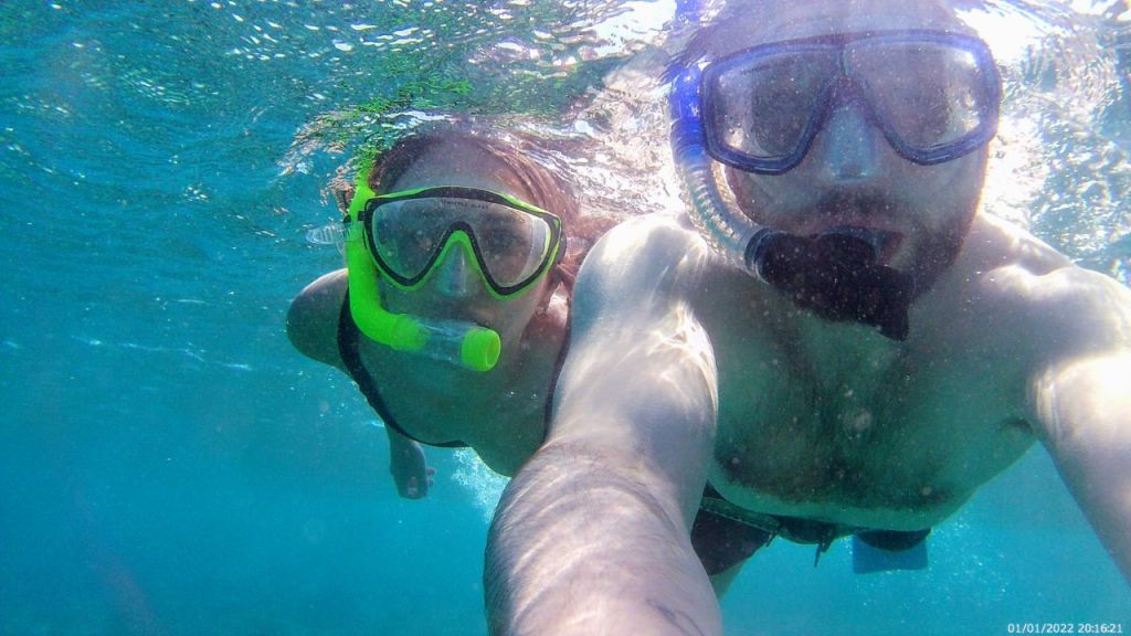 Wir sehen eine Riesenspinne und einen Aal. Beim Schnorcheln auf der zugehörigen Insel sehen wir ein richtig tolles Riff.