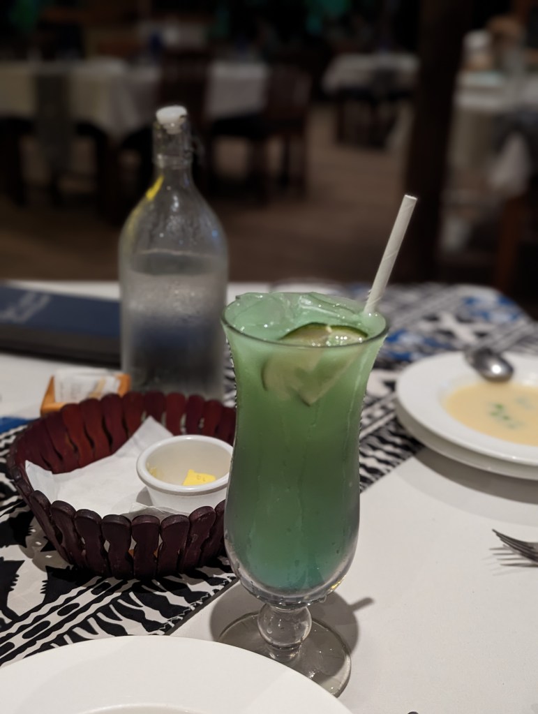 Der Name ist sehr passend, die Bucht leuchtet blau-türkis. Bis auf das Schnorcheln im Hausriff überzeugt uns dieses Resort nicht.