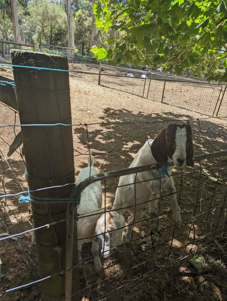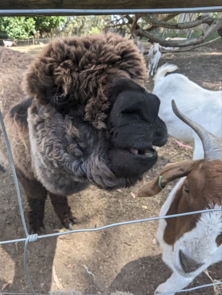 Außerdem gibt es noch ganz viele Ziegen, zusammen mit einem frechen Alpaka, welches die Ziegen immer anschimpft, wenn sie Essen kriegen. Lustige Geräusche: sie summen.