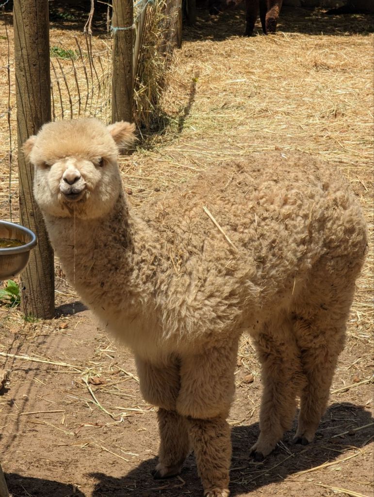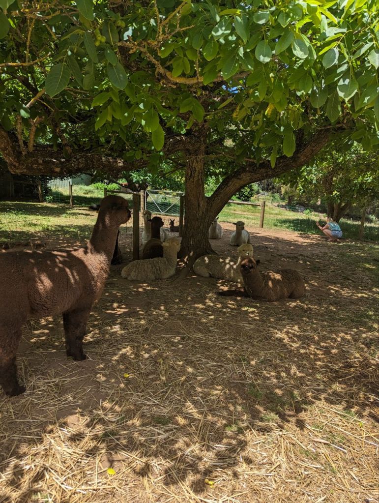 Es gibt noch mehrere Gehege mit entspannten Alpakas und Kängurus.