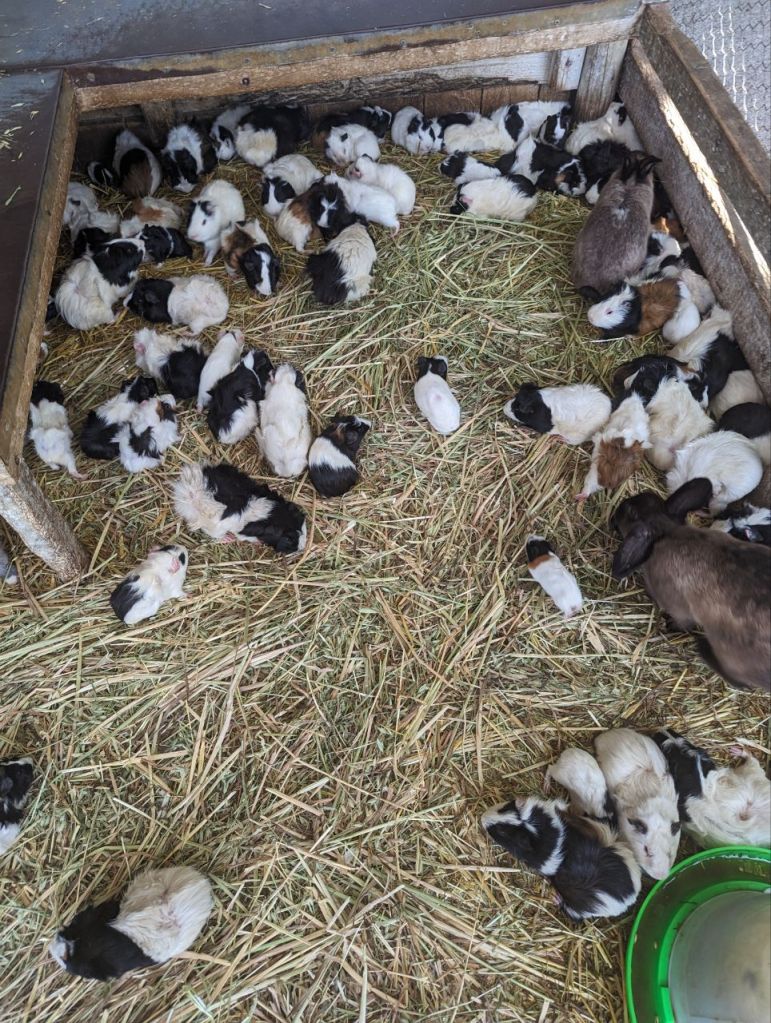 Außerdem noch eins mit Hasen und Meerschweinchen. Mira kuschelt ein Babymeerschweinchen. Wir haben eine babyreiche Zeit erwischt mit dem Frühling.