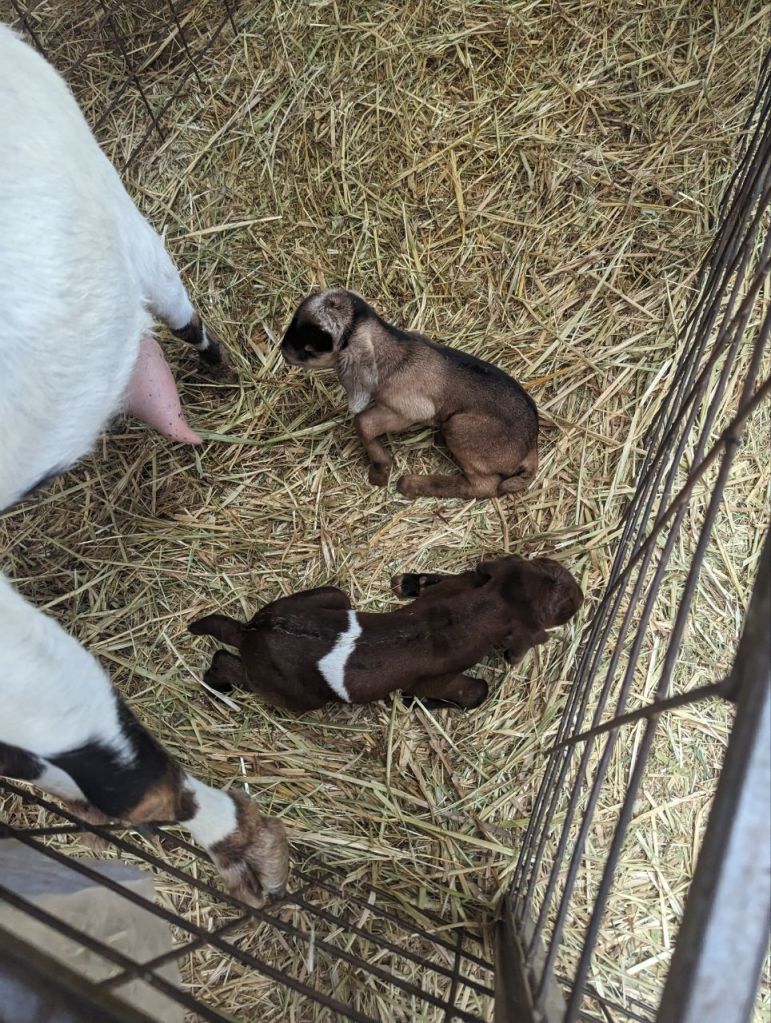 Die zwei Babys sind in einem niedrigen Gehege, damit sie nicht ausbrechen. Sie sind noch ein bisschen schüchtern, aber super niedlich und weich.